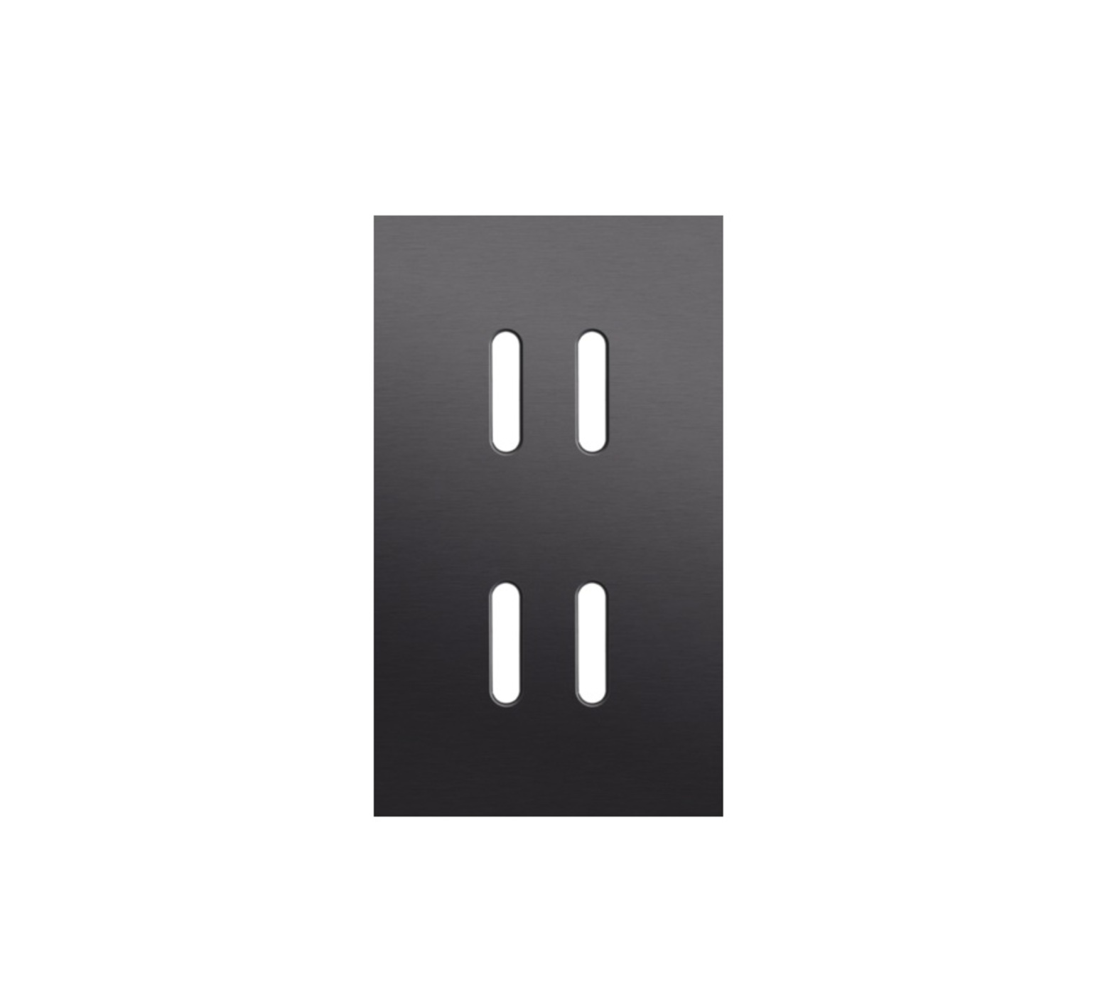 Placa frontal, Balancín, Doble vertical, Aluminio cepillado negro, Interruptor x2, Interruptor x2, A8,3cm, A14,3cm - Niko