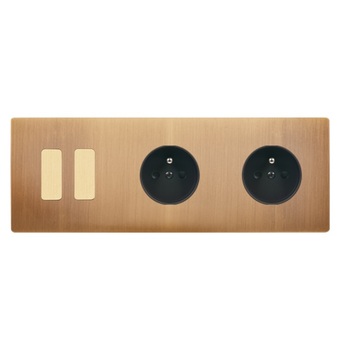 Interruptor y enchufe, M, Doble horizontal, Latón cepillado, Interr...