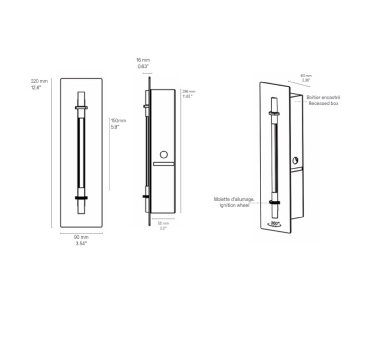 Carta incorpora una fuente LED de 144 lm, 2 W y 2700 K, que proporciona una luz suave y precisa que no puede atenuarse, por lo que resulta ideal para la iluminación de acento o de ambiente. Su cuerpo mide H32 cm × W9 cm, y requiere una profundidad de empotramiento de 6 cm. La opción giratoria garantiza un ajuste sencillo y silencioso. El aplique puede encenderse o apagarse girando completamente el tubo de luz.