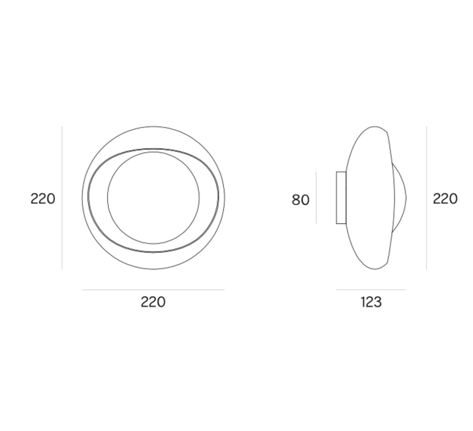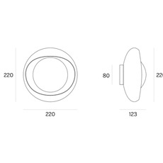 La Cornea 220 mide 22 cm de diámetro y 12,3 cm de profundidad. Funciona con una bombilla G9 (máx. 28 W), que no se suministra pero que es indispensable para el buen uso de la luminaria. No regulable, proporciona una luz fija y uniforme gracias a su cristal opal de tres capas. El aplique está fabricado en acero y cristal e incluye un cable de 2,5 m y un interruptor.