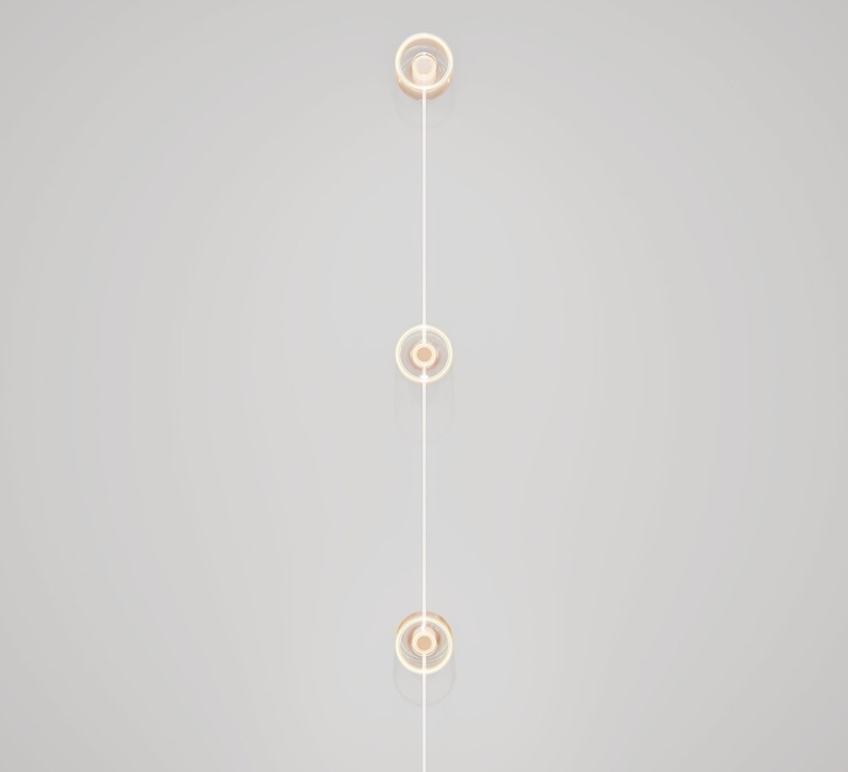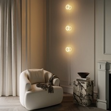 Compuesto por tres puntos de luz Ghost unidos por un cable textil blanco RC01, evoca una cinta de luz suspendida en el espacio. Cada módulo difunde una luz suave y circular, creando una atmósfera cálida y gráfica. Este aplique se instala fácilmente a lo largo de una pared para acentuar un techo alto, enmarcar un espejo o dar ritmo a un pasillo. Su cable de color añade un toque decorativo distintivo, ideal para interiores modernos o industriales que buscan combinar elegancia y personalidad.