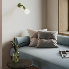 El aplique verde pradera de Fermaluce en silicona tiene un aspecto minimalista y visualmente equilibrado. Su acabado se integra armoniosamente en interiores contemporáneos, escandinavos o arquitectónicos. Gracias a su cabezal orientable, la lámpara puede inclinarse hasta 90° y girar 315°, ofreciendo una gran libertad de orientación. Ideal en un vestíbulo, un salón o un dormitorio, difunde una luz suave y uniforme a 360°, perfecta para crear un ambiente acogedor y cálido.