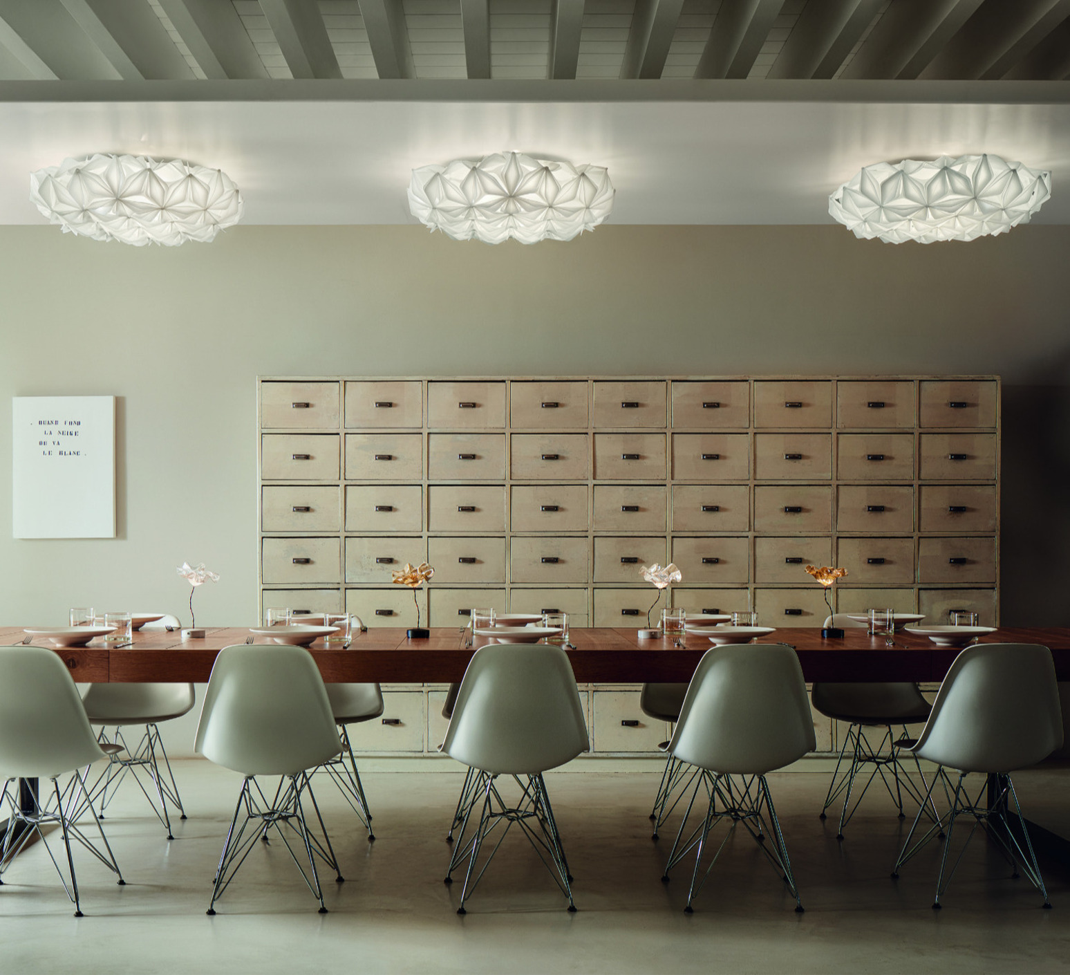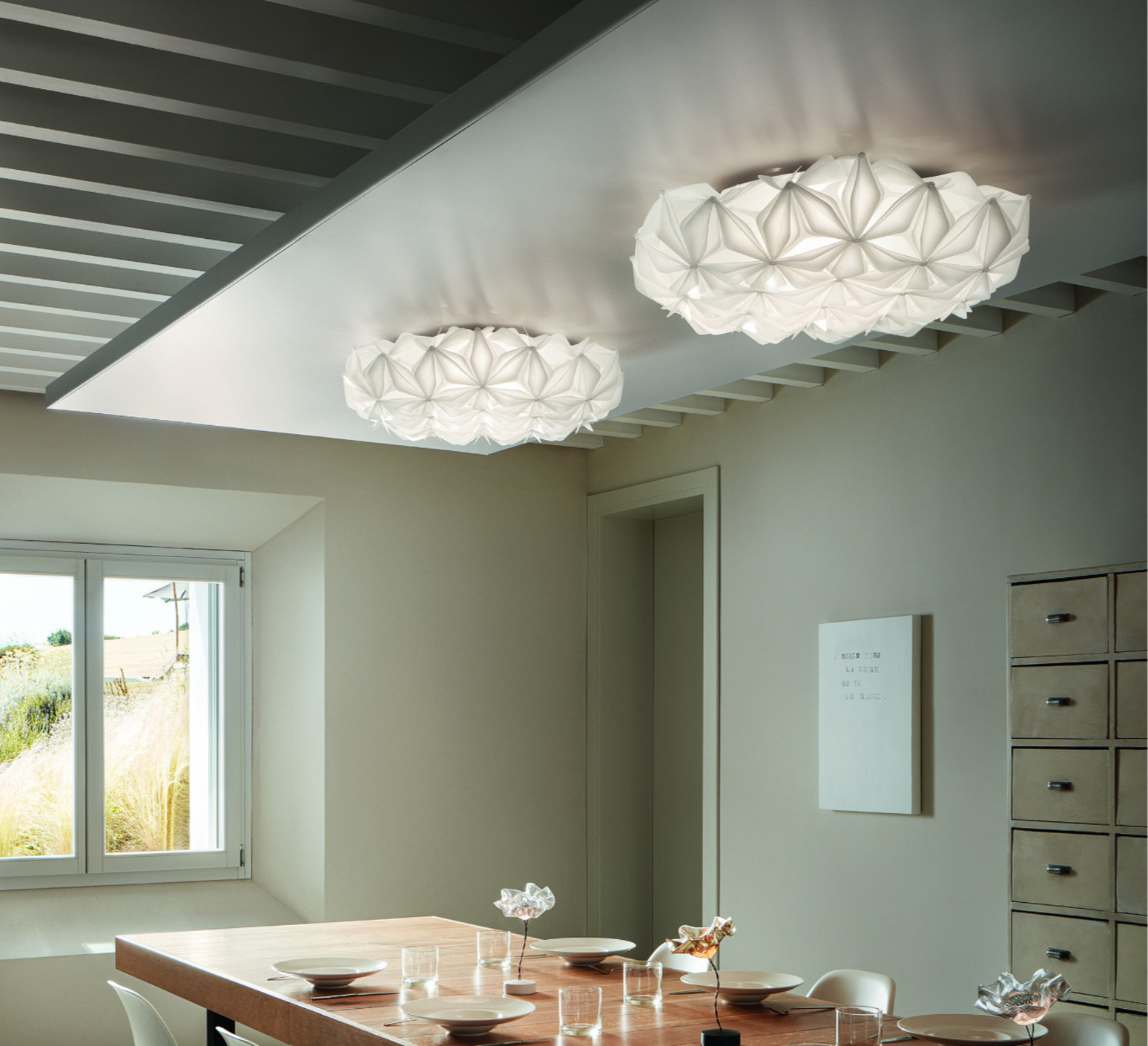 Descubra el aplique o plafón La Vie de Slamp, diseñado por Adriano Rachele, que traduce energía y armonía.