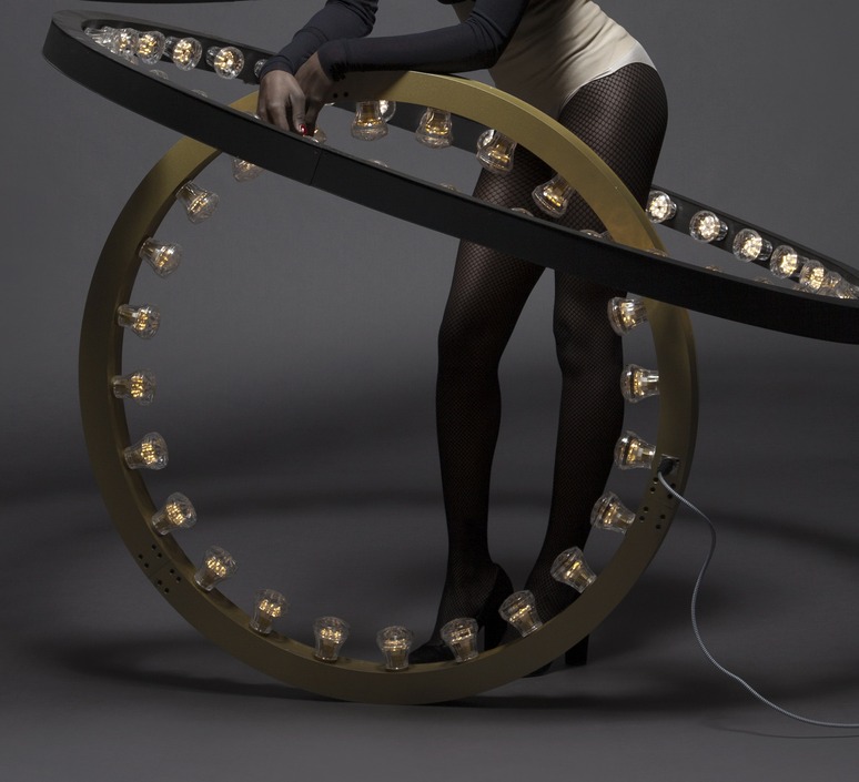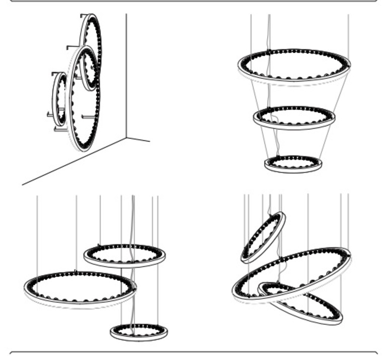 Diseñada por Jasper van Grootel, se compone de uno a tres elementos circulares de diferentes tamaños, que pueden utilizarse solos o combinarse a voluntad para formar una grandiosa lámpara de araña.