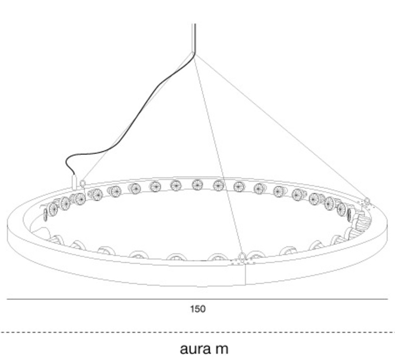 Fabricada en aluminio anodizado, cada AURA está equipada con bombillas LED de feria.