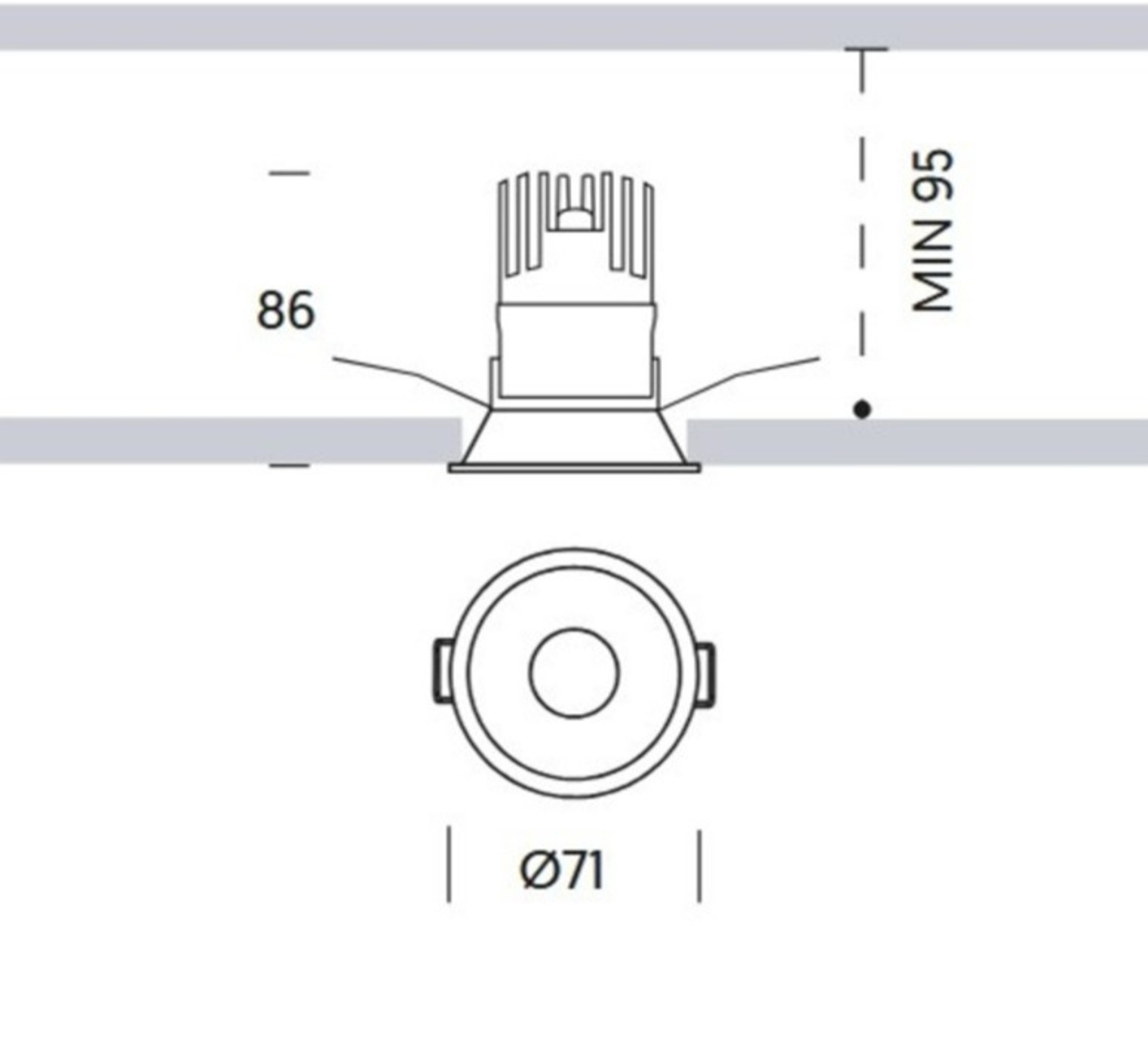 Este foco empotrable incorpora una fuente LED de iluminación directa, que ofrece una luz cálida de 2700K y un flujo luminoso de 1182 lm para un efecto de luz confortable y preciso. Su ángulo de apertura de 36° garantiza una iluminación puntual de calidad, con un CRI superior a 90. Sus dimensiones son Ø7,1 cm, altura 8,6 cm, con un diámetro de empotramiento de 6,5 cm, sin cables visibles y no regulable.