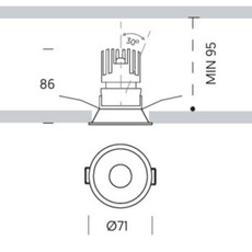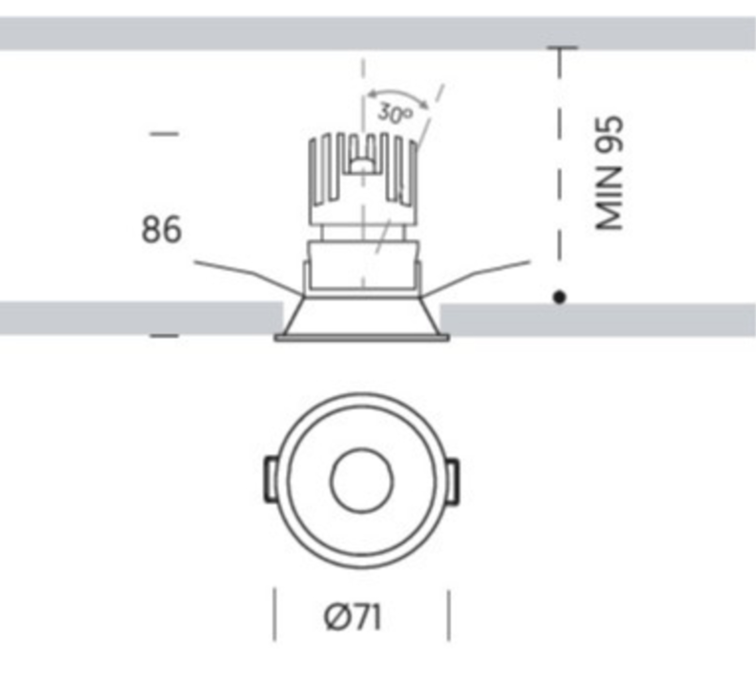 Este foco empotrable cuenta con una fuente LED suministrada que proporciona iluminación directa e indirecta a 2700K para una luz cálida y confortable. Proporciona un flujo luminoso de 1182 lm con un CRI superior a 90, lo que garantiza una excelente reproducción cromática. Con un diámetro de 7,1 cm y una altura de 8,6 cm, un ángulo de apertura de 36° y protección IP44, puede instalarse sin cables visibles para un acabado limpio y duradero.