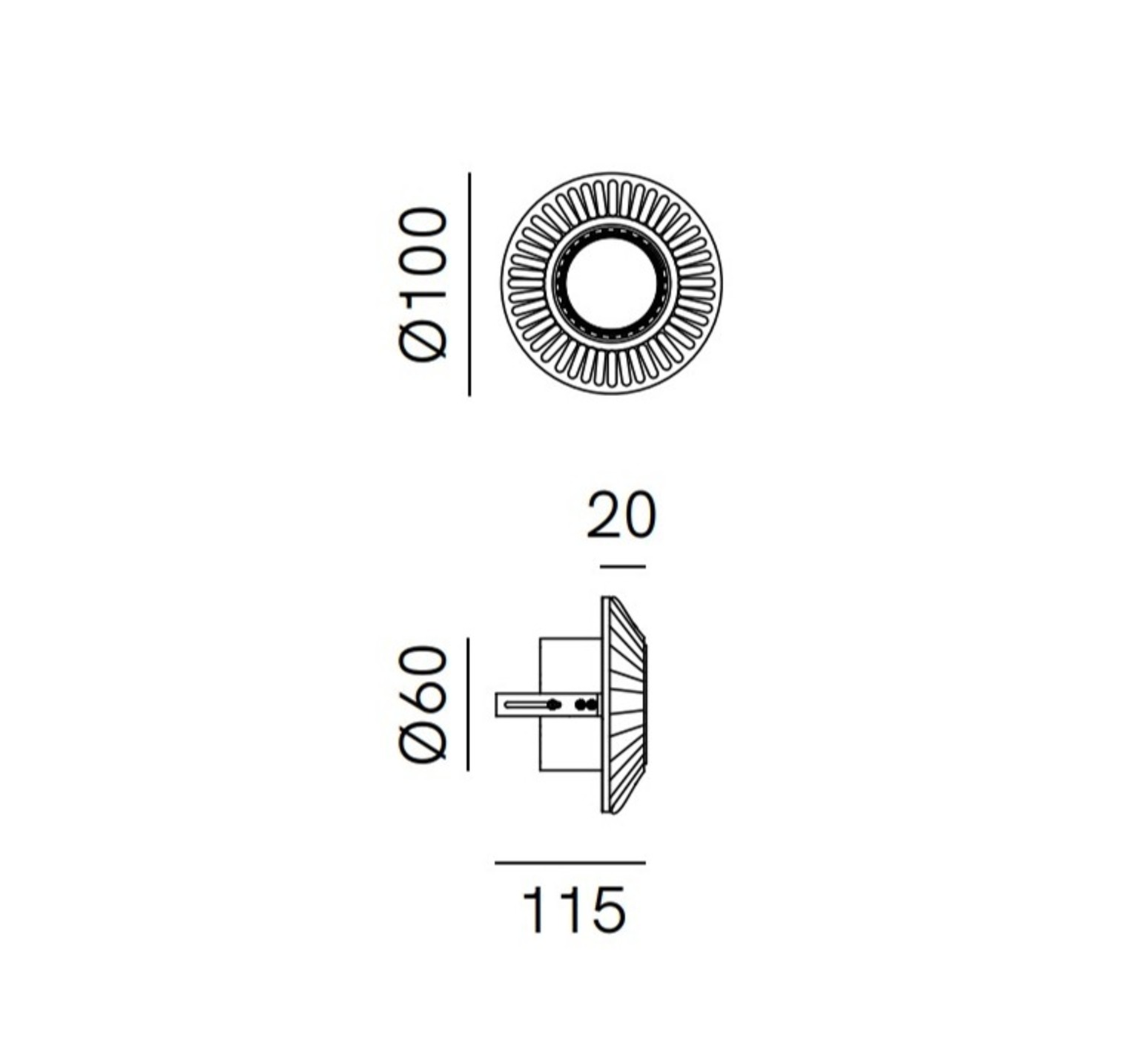 Mini mide 10 cm de diámetro y 11,5 cm de profundidad. Su fuente de luz (1 x GU5.3) no está incluida, pero está disponible como accesorio esencial.
