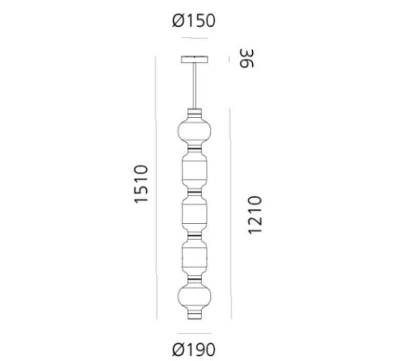 El colgante mide 121 cm de alto y 19 cm de diámetro.