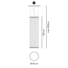 Técnicamente, el Array está equipado con tecnología LED de vanguardia que ofrece una temperatura de color cálida de 2700K. Con una potencia máxima de 33 W y una intensidad luminosa de 3993 lm, proporciona una iluminación generosa a la vez que permite ajustar suavemente la intensidad de la luz gracias a su función de regulación. Su largo cable permite adaptarla a diferentes alturas de techo. Regulador pulsador; Dali-2. Instalación con rosetón de superficie.