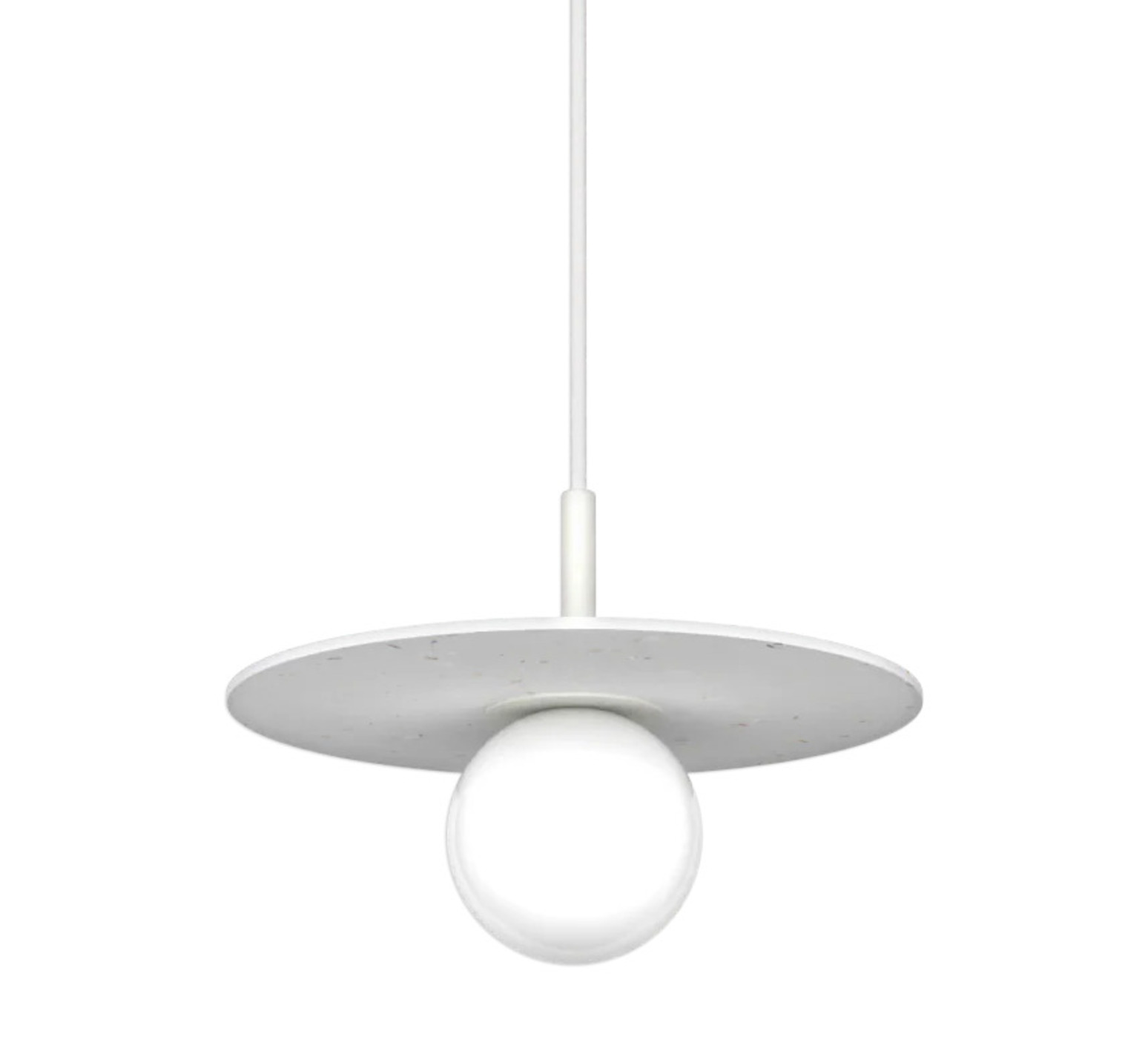 Aquí está la suspensión Pluto Small en acabado blanco candyfloss de Louise Hederström para Swedish Ninja.
