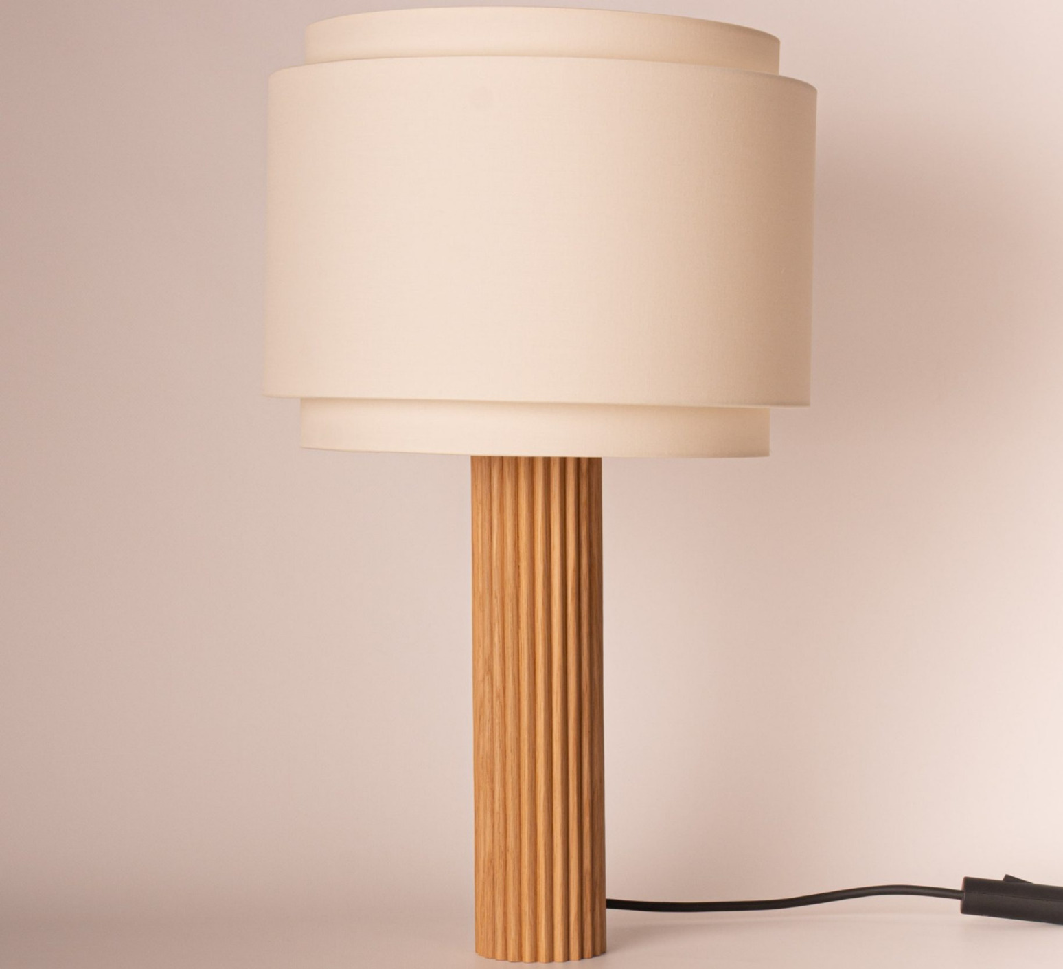 La lámpara de mesa Fluta Duoble encarna la elegancia atemporal del diseño contemporáneo. De la colección homónima, esta pieza combina madera de roble y pantalla de algodón en un refinado matrimonio.