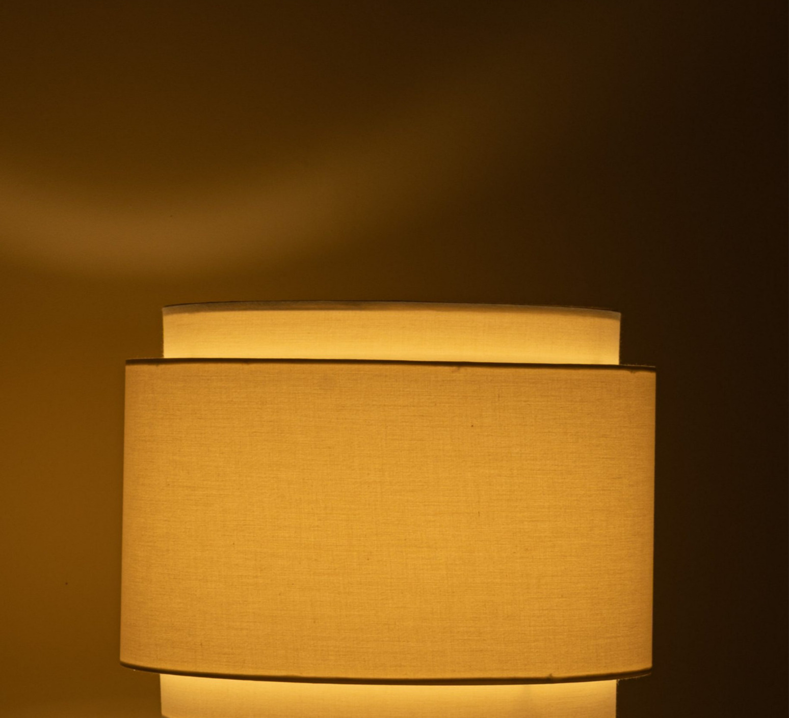 Lámpara de mesa, Fluta Duoble , madera de roble, doble pantalla de algodón, Ø35cm, H60cm - Simone & Marcel