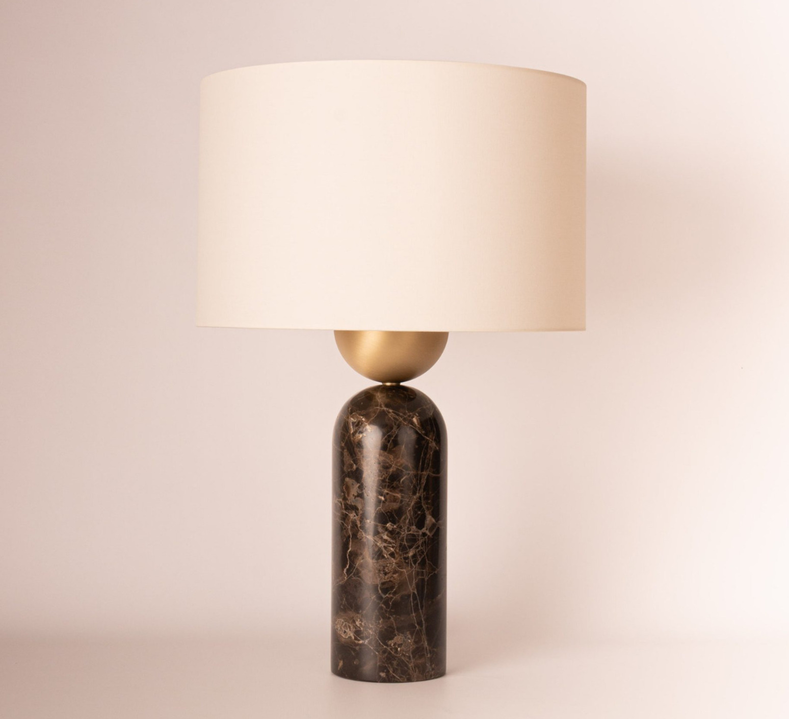 Lámpara de mesa, Peona , mármol marrón , pantalla de algodón, Ø40cm, H61cm - Simone & Marcel