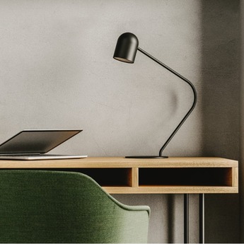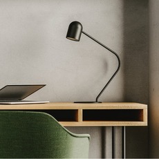 Esta lámpara es una elección natural para una mesilla de noche, un escritorio o una consola, donde añade un toque gráfico sin sobrecargar el espacio. Gracias a su acabado en negro, combina a la perfección con decoraciones claras para crear un efecto de contraste, o con materiales más rugosos como la madera o el hormigón. Instalado por parejas, realza aún más el aspecto rítmico y armonioso de una composición interior.
