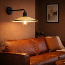 Este aplique mide 28,5 cm de diámetro y 30 cm de profundidad. Fabricado en porcelana esmaltada, es compatible con una bombilla E27 (no incluida).