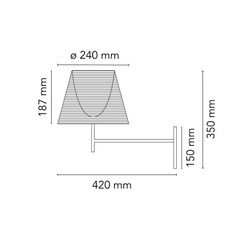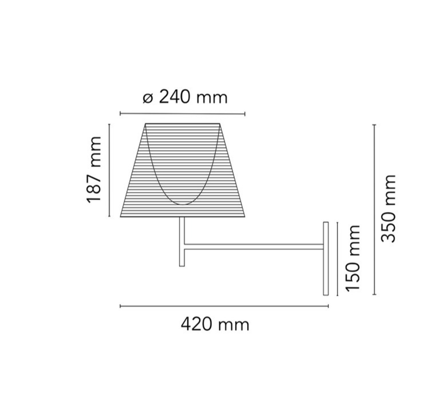 Su pantalla mide 24 cm de diámetro. Su profundidad es de 42 cm. La fuente de luz no está incluida, pero está disponible como accesorio indispensable.