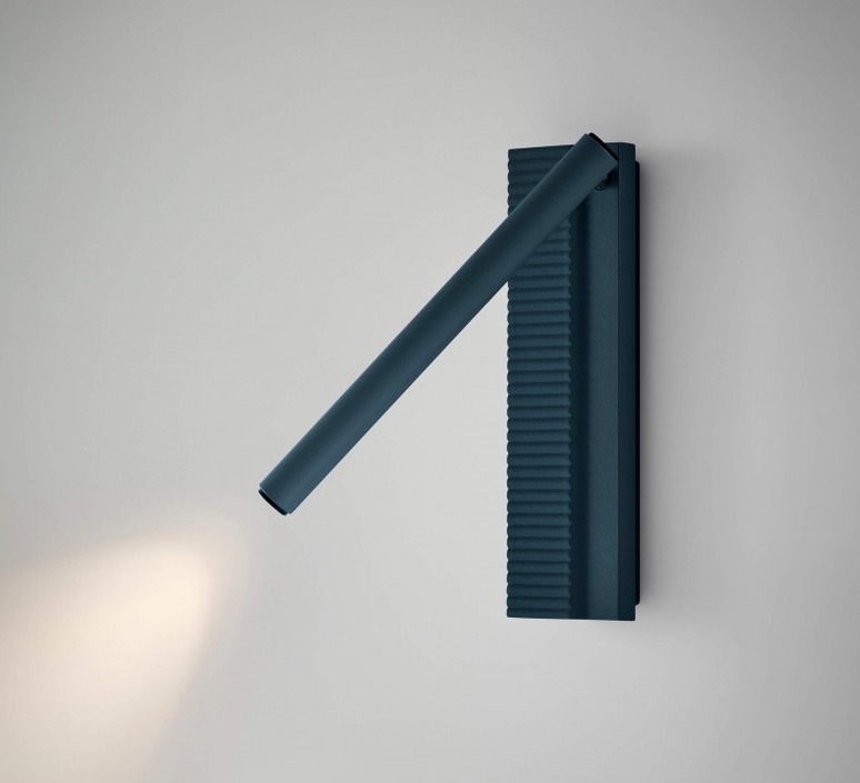 Lámpara de pared, luz de lectura, Arid A/02 derecha, azul-gris, LED, 2700K, 360 lm, W5.5cm, H20cm - Bover