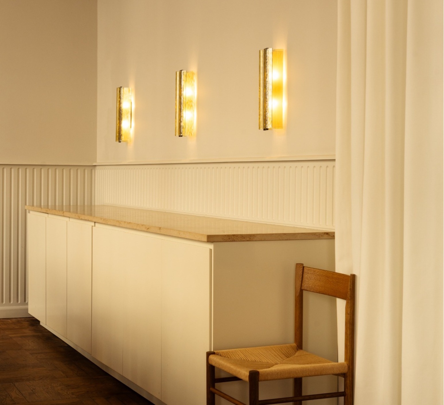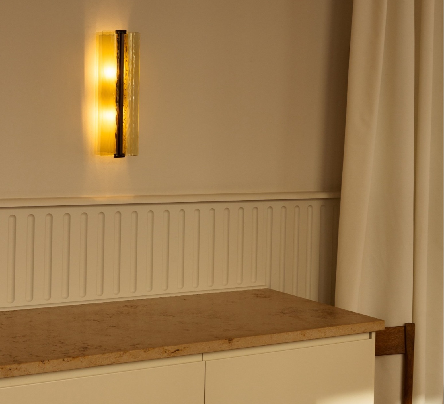 El aplique Ryff 405 combina un difusor de vidrio esculpido con una estructura de aluminio acabado en bronce que juega con la luz para crear un efecto suave y envolvente de 360°. Su superficie texturada se inspira en el ritmo de un riff musical, evocando el movimiento de una composición o las ondas sonoras. Este efecto visual aporta relieve y un ligero dinamismo a una pared, haciendo de Ryff una pieza decorativa y expresiva para un salón, un pasillo o una zona de lectura. Se integra fácilmente tanto en decoraciones cálidas como minimalistas, gracias a su carácter intemporal marcado por una influencia de los años 30 revisitada de forma contemporánea.