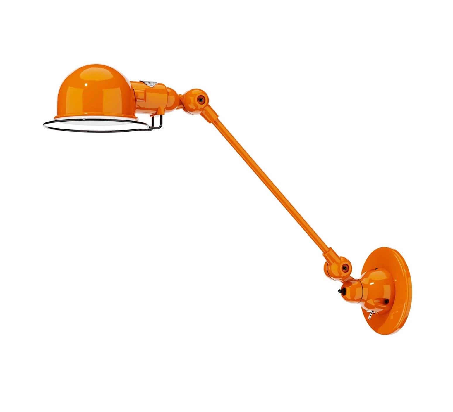 La lámpara de brazo Signal 1 es muy adaptable. Es fácil de maniobrar y girar gracias a sus tres articulaciones sin cables, y también es extremadamente robusta gracias a su estructura de acero y aluminio fundido. Los materiales utilizados en esta lámpara recuerdan su finalidad original, cuando se utilizaba para iluminar talleres y fábricas. Hoy, alejada del mundo de la industria, es una lámpara decorativa con un aire vintage y retro. Su diseño clásico y depurado y su color naranja hacen de esta lámpara de escritorio Signal la luz ideal para crear un ambiente atemporal.