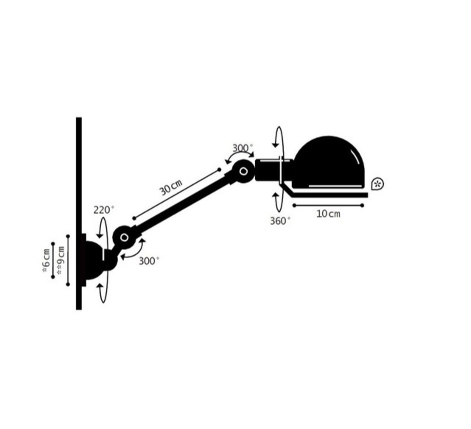 Lámpara de pared, Señal 1 brazo, SI301, naranja, brillante, A40cm, A15cm - Jieldé