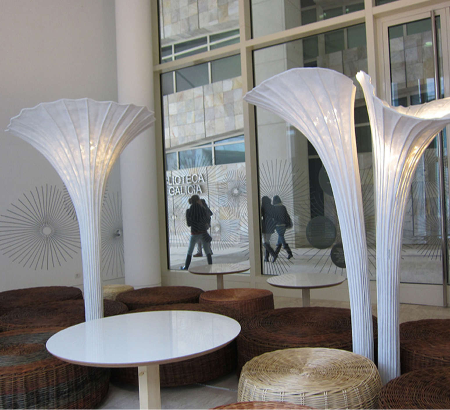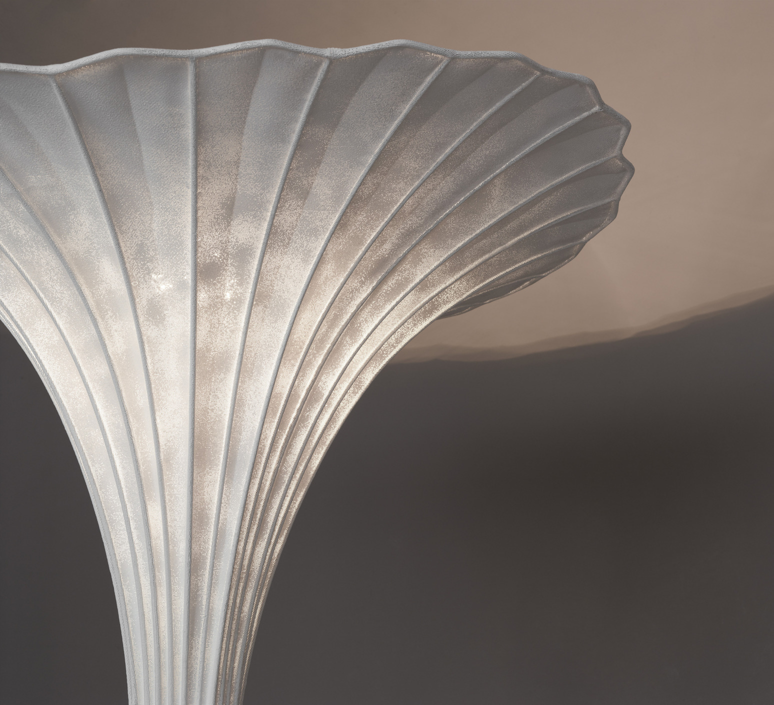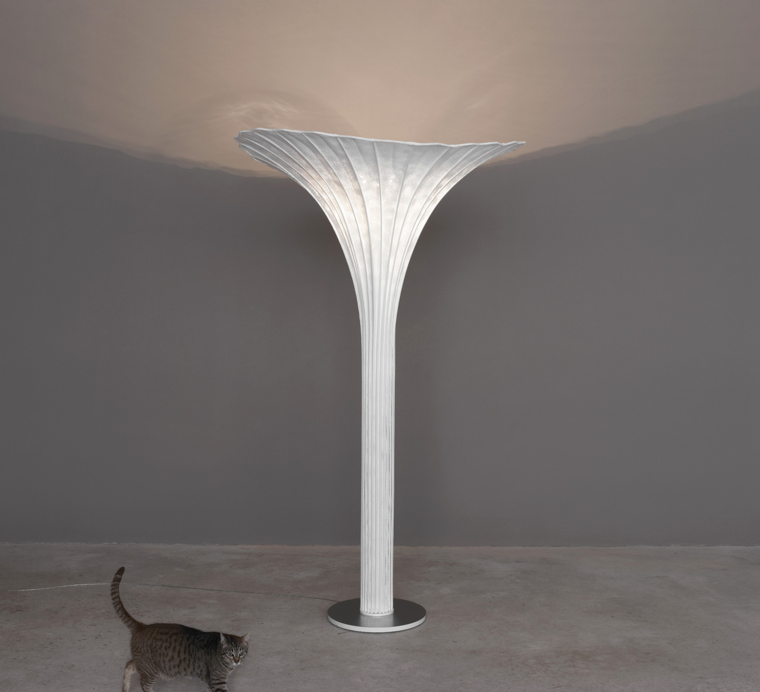 Con su volumen escultural y su imponente altura de 220 cm, África estructura el espacio con carácter. Su silueta cónica, revestida de malla de acero pintada de blanco, difunde la luz que se eleva verticalmente y se abre en la parte superior. Es una elección natural para un salón de generosas proporciones, un vestíbulo o un área de recepción, donde puede utilizarse como punto focal decorativo en diálogo con líneas arquitectónicas limpias.