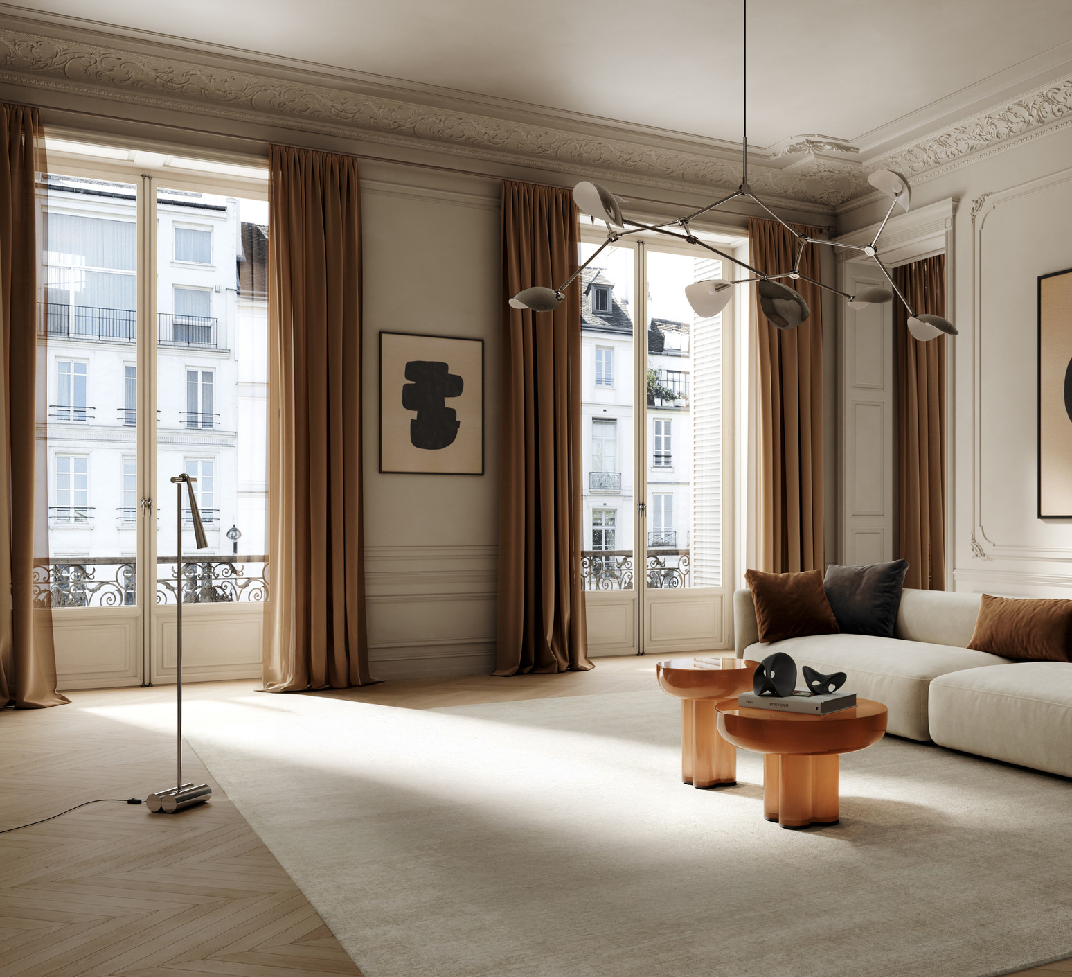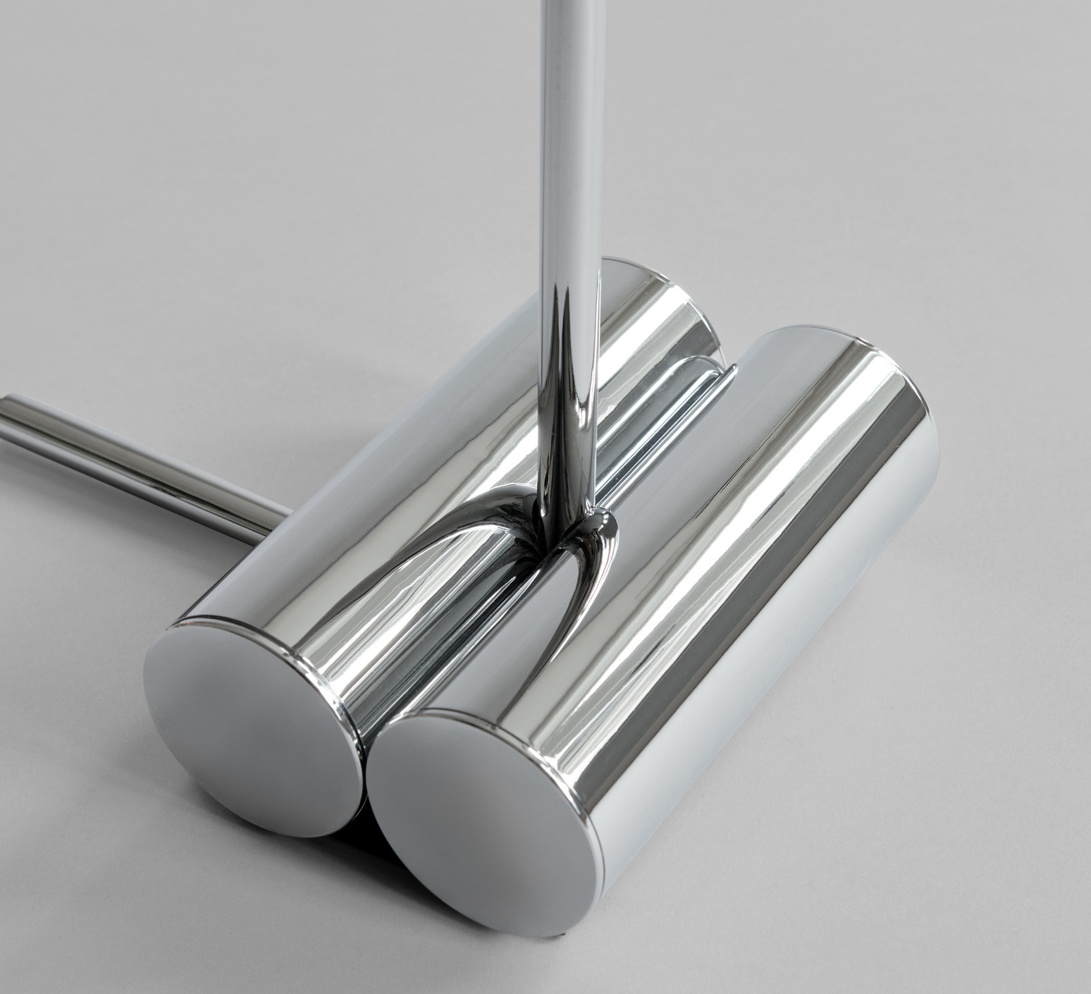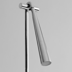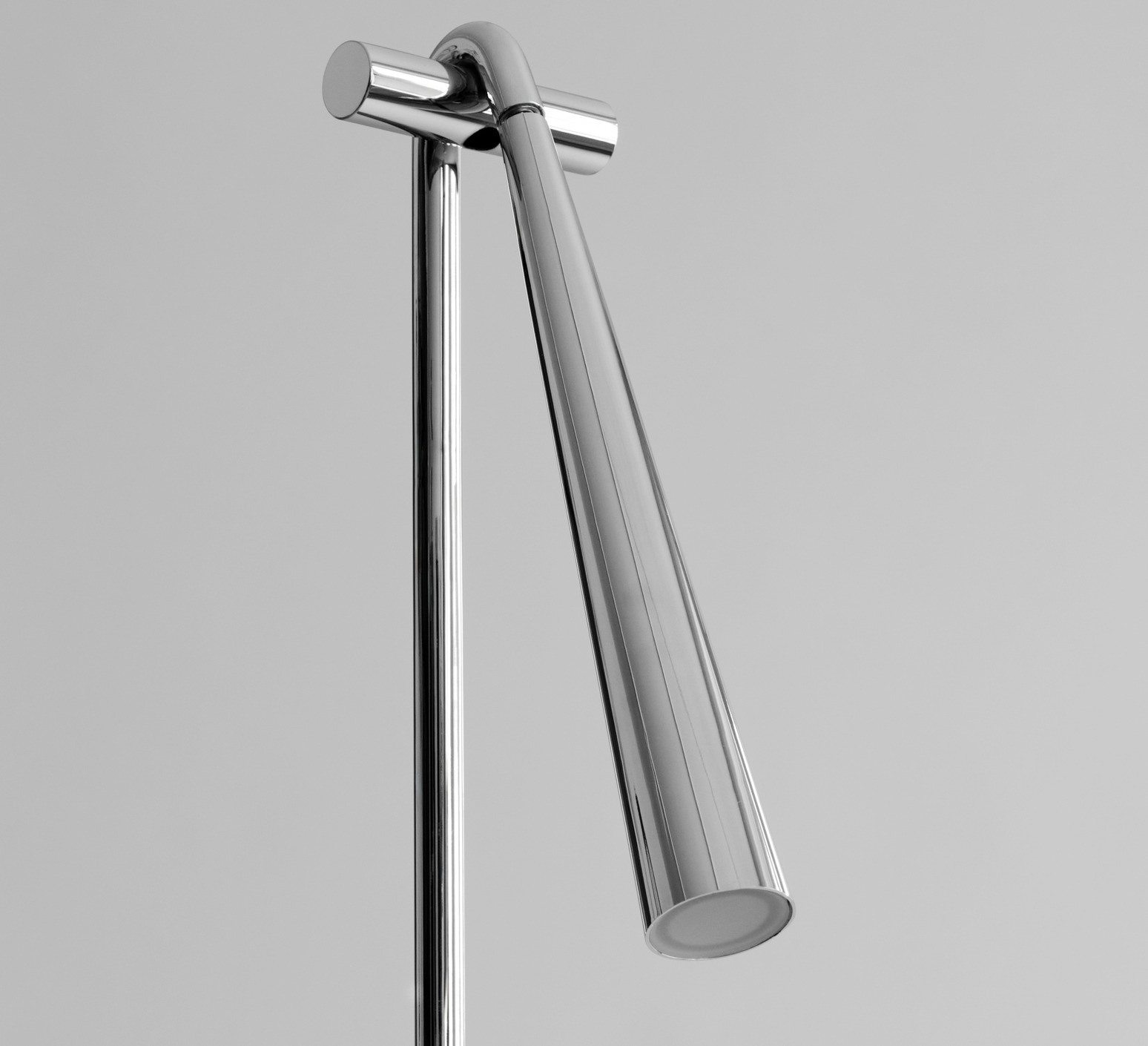 Su estructura de aluminio cromado se despliega en esbeltos tubos que desembocan en una pantalla cónica ajustable que difunde una luz cálida y directa. La lámpara de pie Snake puede colocarse junto a un sillón, un escritorio o en la esquina de una habitación para crear un punto de luz escultural, o combinarse con otros modelos de la colección para dar ritmo y estructura al espacio.