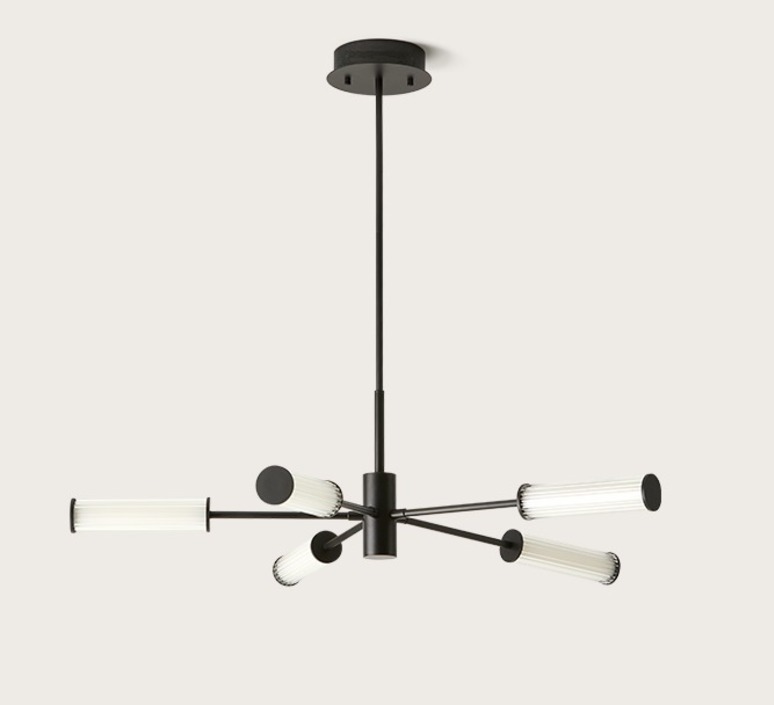 Esta luminaria es perfecta para iluminar una pared de acento, realzar un comedor o crear una iluminación decorativa en un gran recibidor. Gracias a sus materiales y acabados, encaja tanto en interiores contemporáneos como clásicos, y sus globos estriados proyectan interesantes reflejos sobre las superficies circundantes.