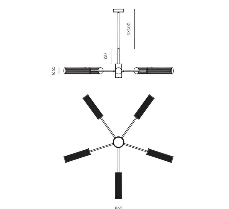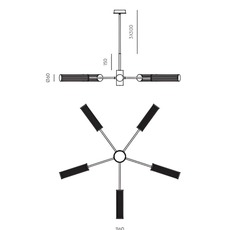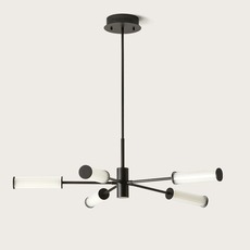 El modelo Ison está equipado con cinco módulos LED de 7 W cada uno, que proporcionan una luz de 2700 K y son regulables mediante un regulador TRIAC. Mide 116 cm de diámetro.