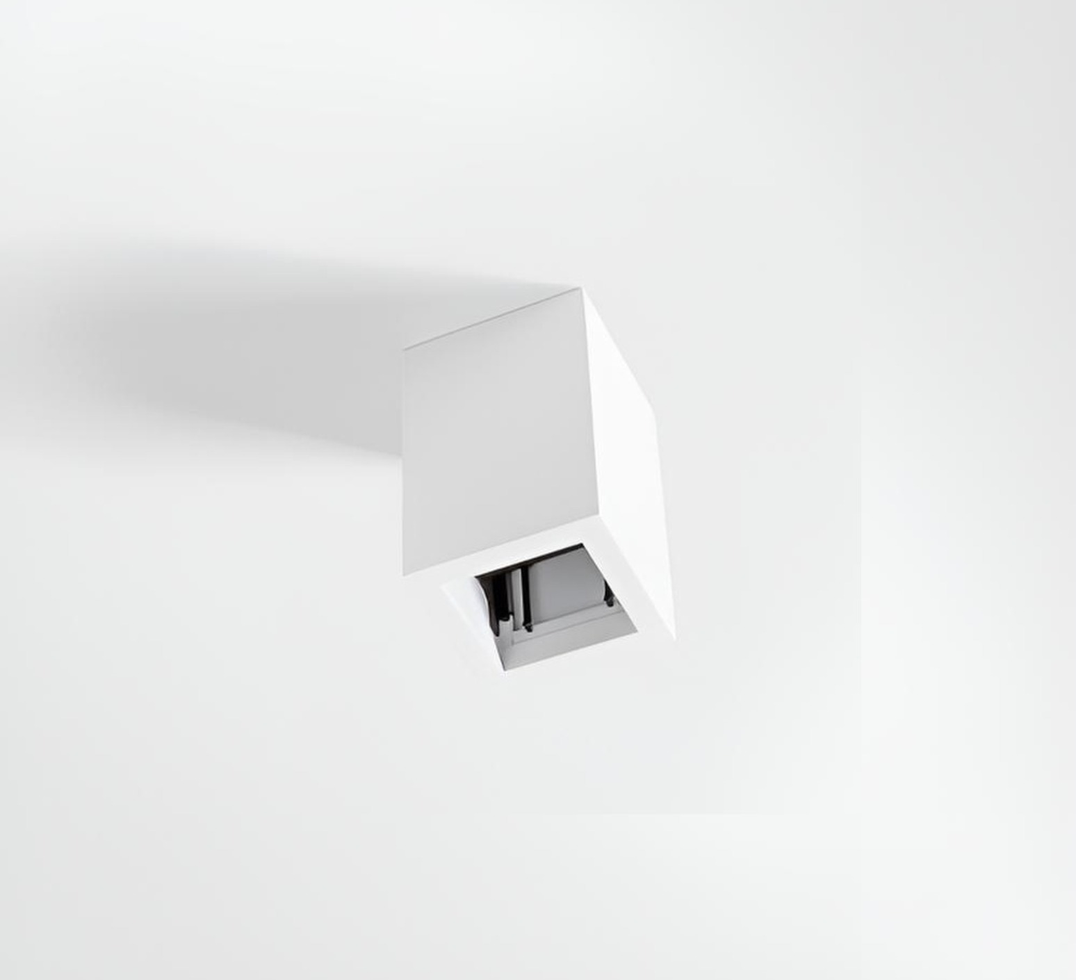 Esta caja de luz es ideal cuando se desea dar relieve a un techo bajo o añadir un punto de luz sin tener que empotrarla. Puede instalarse sola para una iluminación sobria, o como una colección en ejes rectos o de 90° para crear formas geométricas. Su diseño blanco combina perfectamente con techos claros y ambientes escandinavos o contemporáneos.