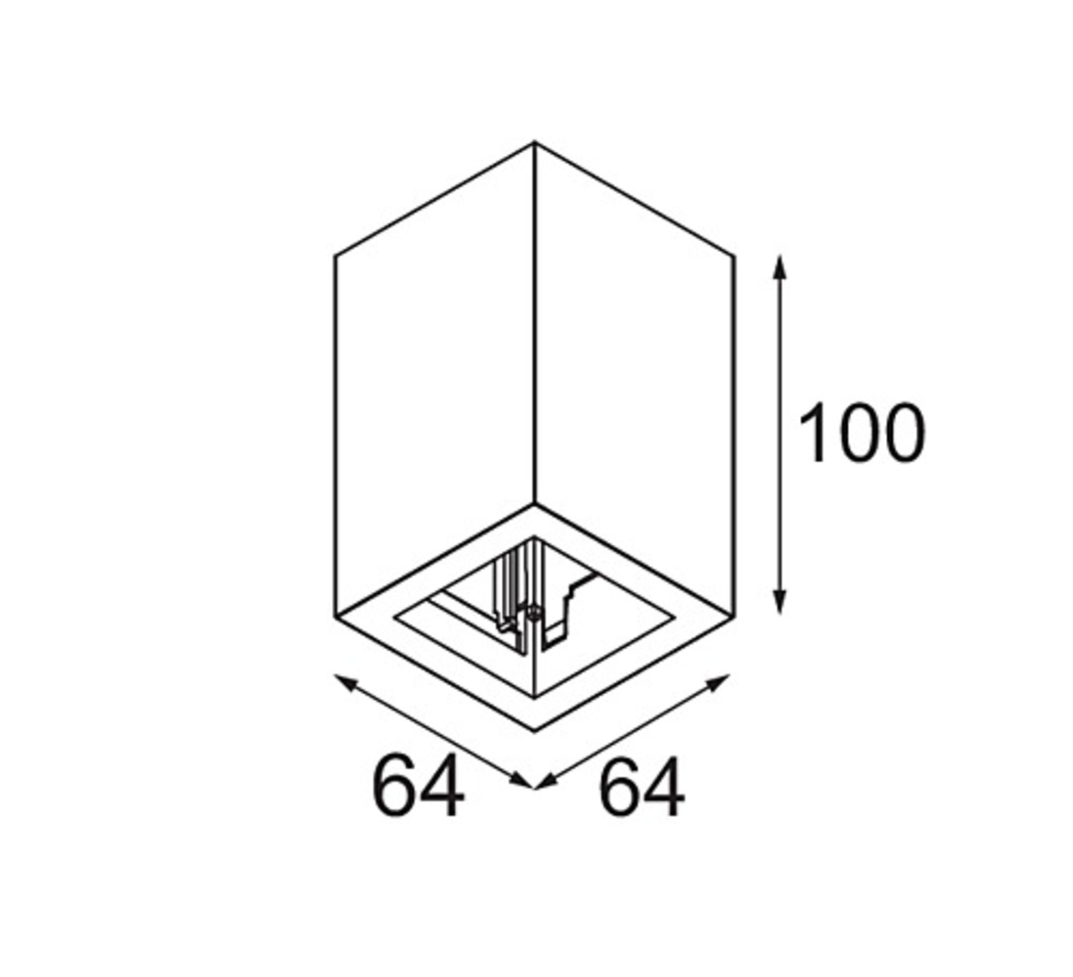 El cubo mide 6,4 cm de largo y ancho y 10 cm de alto. Su fuente de luz y driver no están incluidos, pero son necesarios para que la luminaria funcione correctamente.