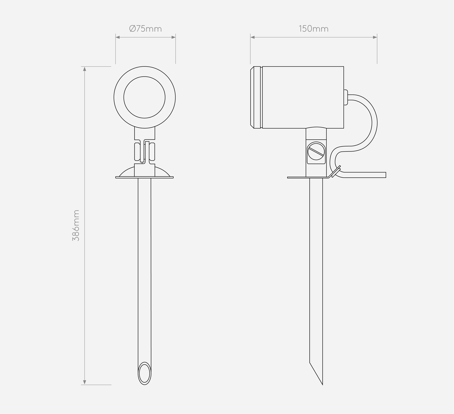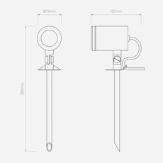 Este foco funciona con una bombilla LED GU10 (no incluida pero disponible como accesorio indispensable). El cabezal puede inclinarse hasta 100° y girar 360° para apuntar con precisión a la zona que desee sin limitaciones. Este foco se fija al suelo mediante una clavija integrada y no requiere ningún controlador externo.