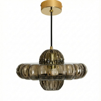 Lámpara colgante Toupi, cristal ahumado y latón dorado, Ø30 cm, H17...