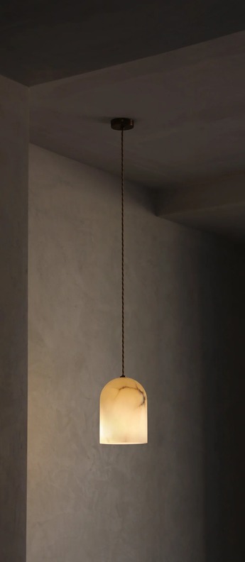 Lámpara colgante, Belfry 28, alabastro, latón cepillado, Ø28cm, H30...
