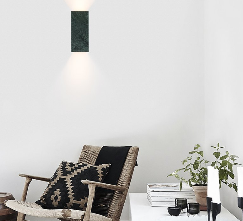 Cette applique verte, faite de marbre apporte un design industriel, chic et minimaliste à tous les intérieurs.