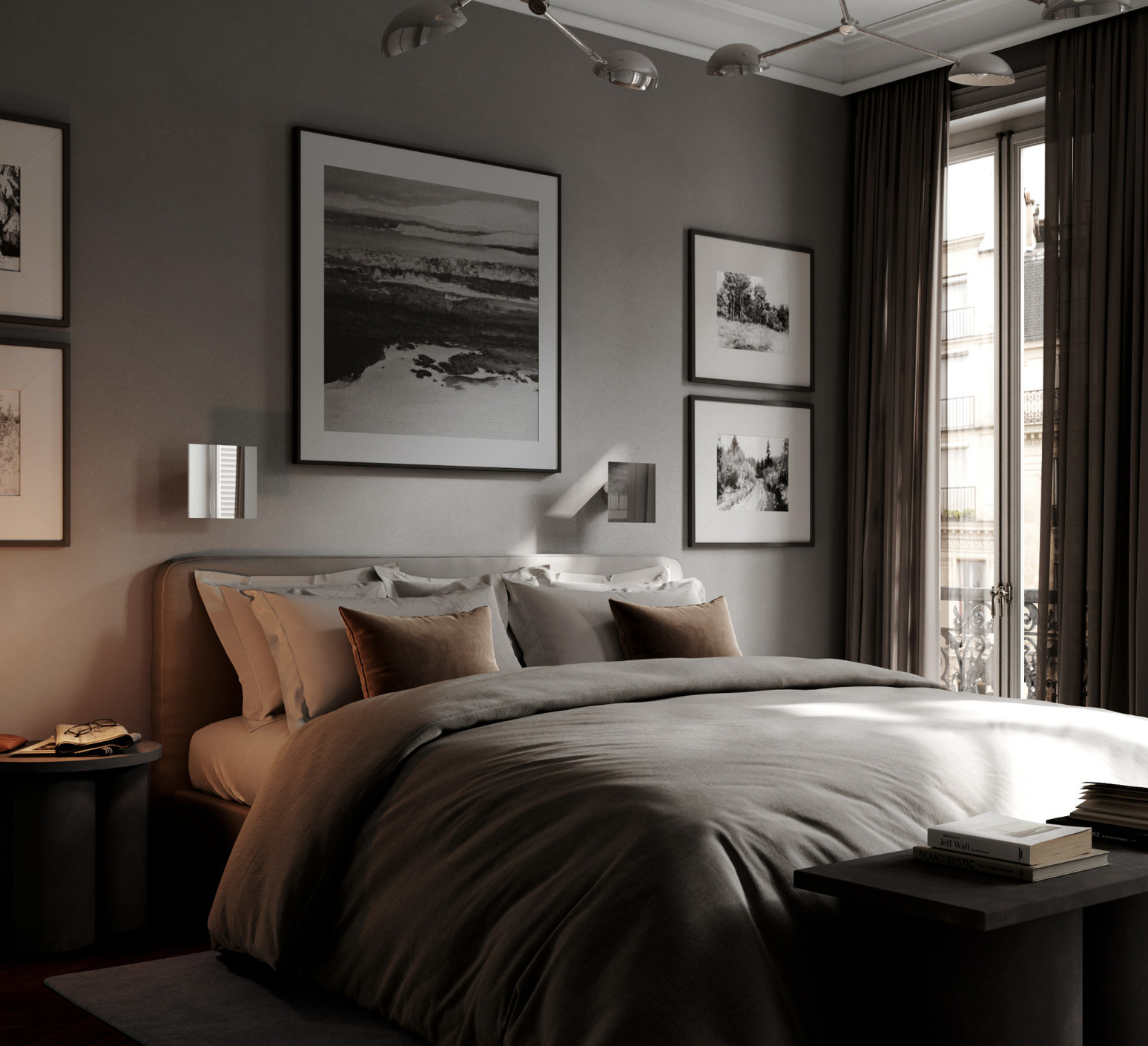 L’abat-jour carré orientable permet d’ajuster l’orientation de la lumière et de créer des jeux d’ombre maîtrisés. Elle trouve naturellement sa place près d’un lit, dans un couloir ou en éclairage d’accent dans un espace de vie, seule ou en composition murale.