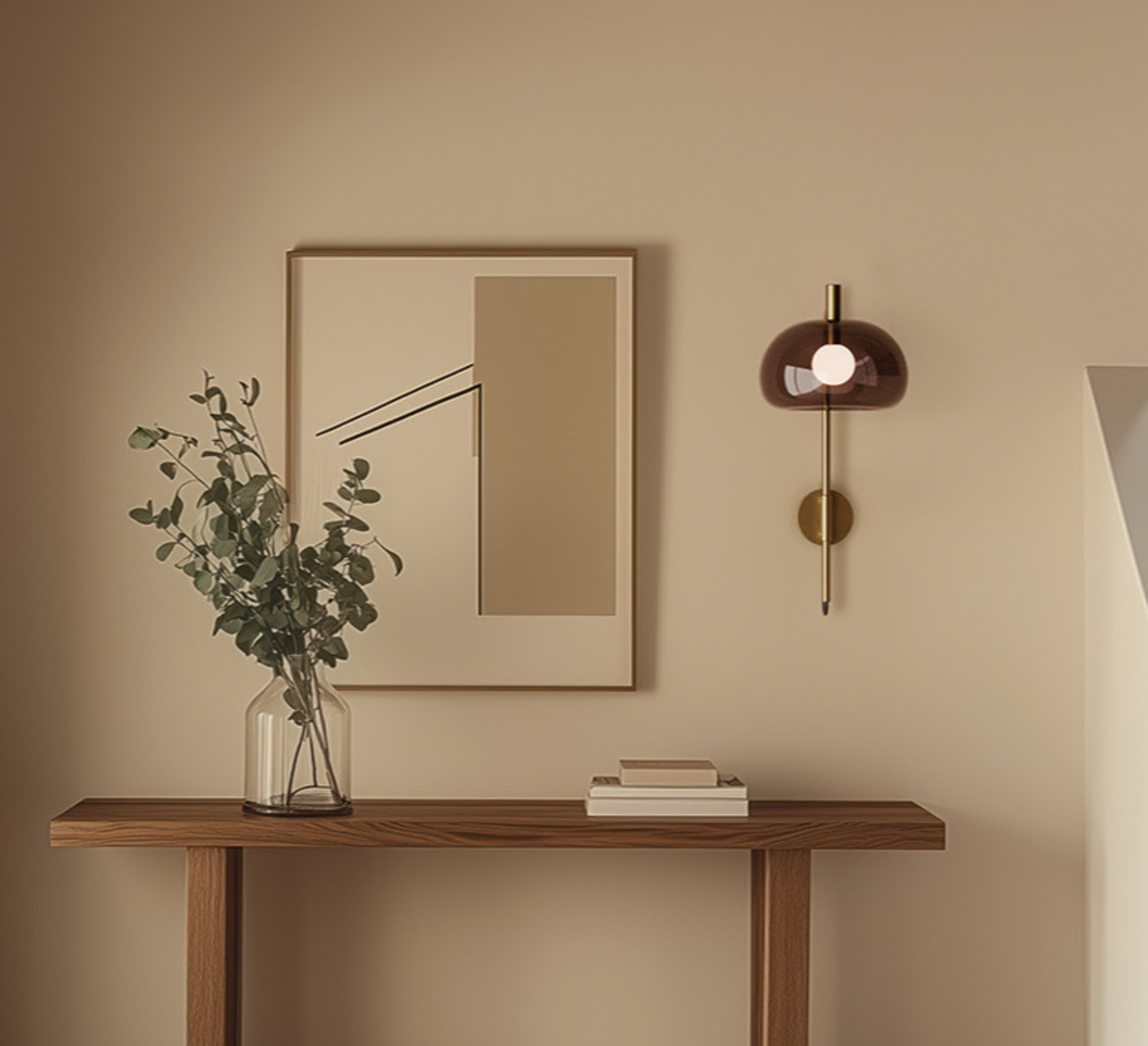 L’applique Cloud se distingue par sa structure en métal finition laiton vieilli supportant un généreux diffuseur sphérique en verre brun olive, dont la teinte subtilement fumée filtre la lumière avec douceur. Sa présence sculpturale valorise un mur de salon, un couloir ou une chambre, en tête de lit ou en éclairage d’accent, et s’associe naturellement aux intérieurs sophistiqués comme aux ambiances plus chaleureuses aux tonalités minérales et boisées.