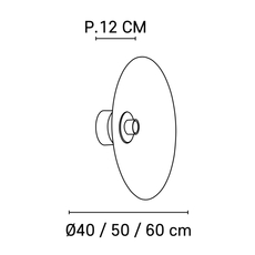 Gatsby mesure 50cm de diamètre et 12cm de profondeur. La source de lumière n’est pas comprise avec l’applique. Nous recommandons une ampoule G80 ou G95 avec un culot E27.