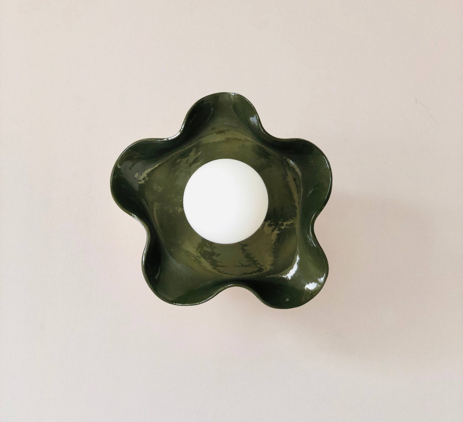 Avec sa couleur olive apaisante, l'applique Jelly apporte une touche bohème et florale à votre intérieur. Sa forme organique et ses matériaux nobles, comme la céramique et le bois, permettent de créer une ambiance chaleureuse et accueillante. Parfaite pour un salon, une chambre ou un couloir, elle s'intègre facilement dans divers styles de décoration, ajoutant une note naturelle et élégante.