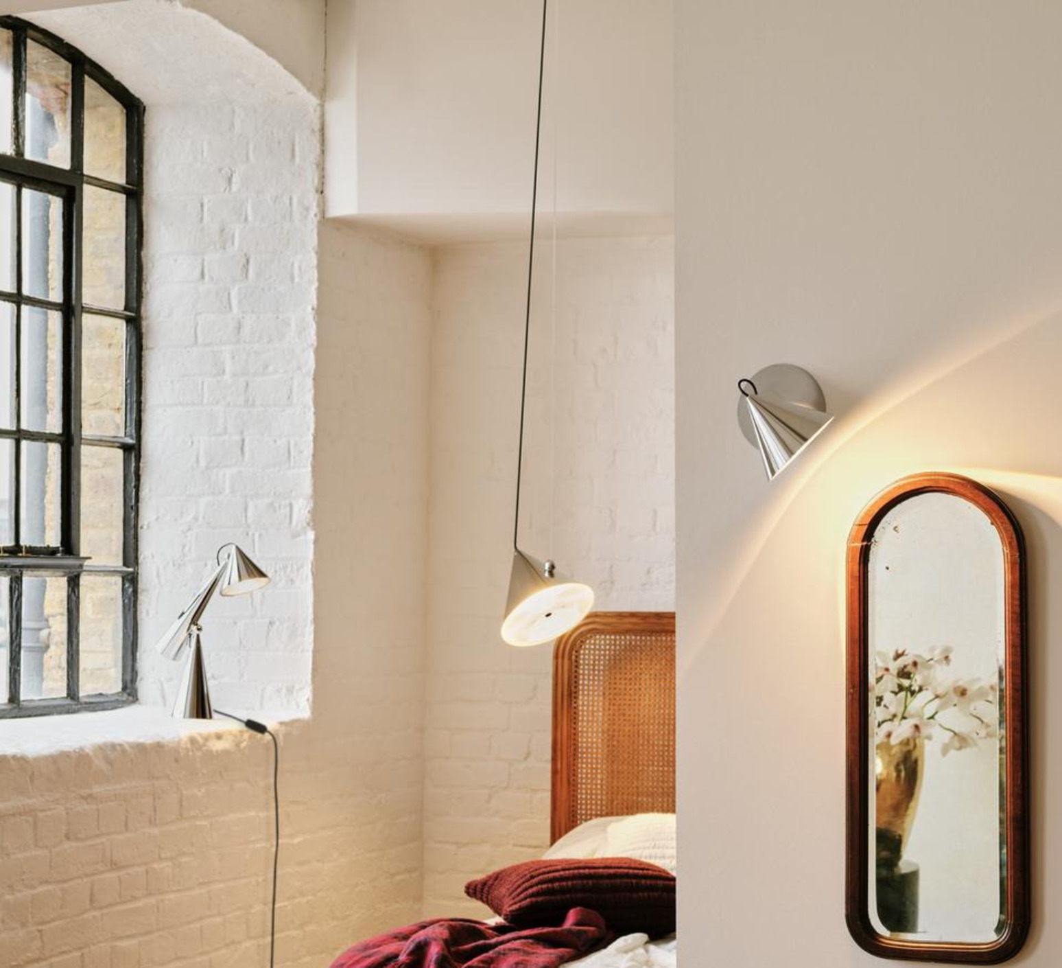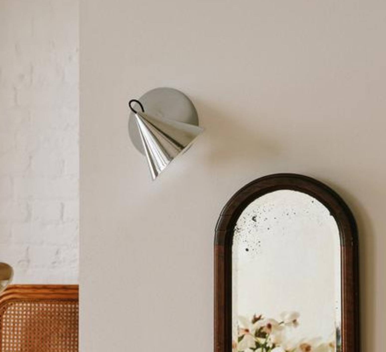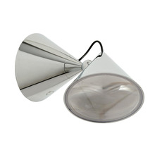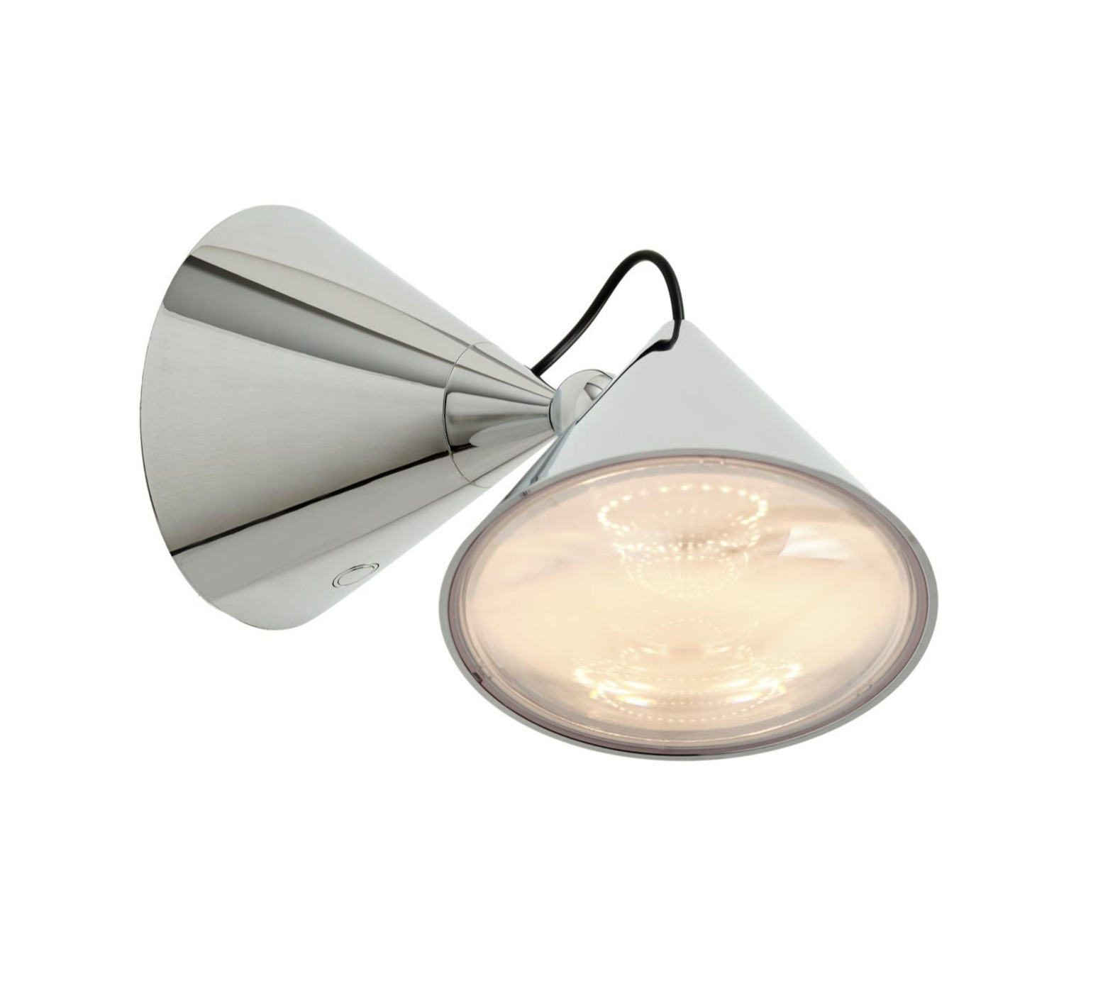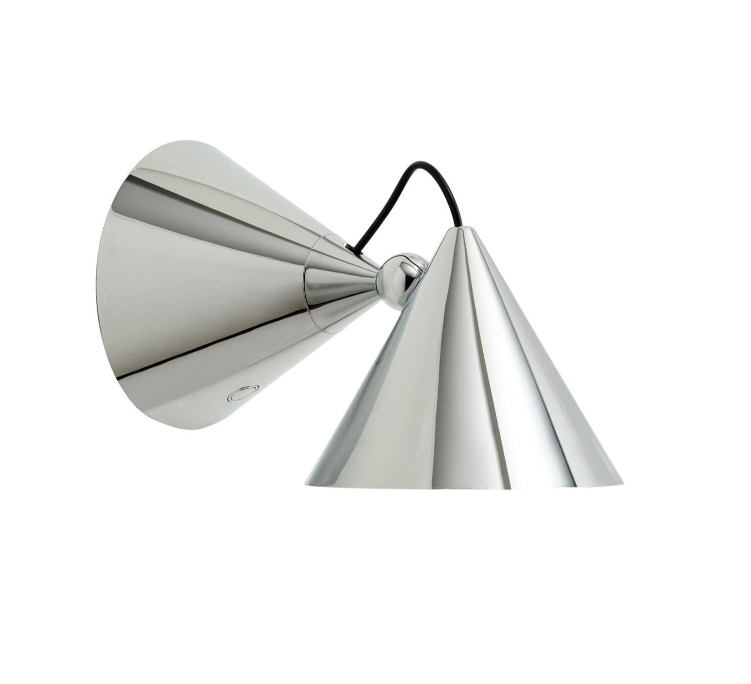 Sa silhouette conique affirmée, associée à la teinte argent, compose un objet mural au caractère graphique marqué. Inspirée des lentilles plates utilisées dans les phares et instruments scientifiques, l’applique crée un faisceau précis qui structure le mur et met en valeur un volume, un passage ou une zone fonctionnelle. Elle trouve naturellement sa place dans un salon, un couloir ou un espace professionnel, seule ou en composition rythmée.