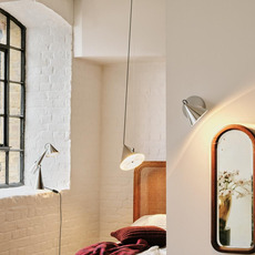 Ce luminaire mural s’inscrit dans une série explorant les formes coniques et les principes de l’optique, avec une approche directe de la lumière destinée aux espaces intérieurs.