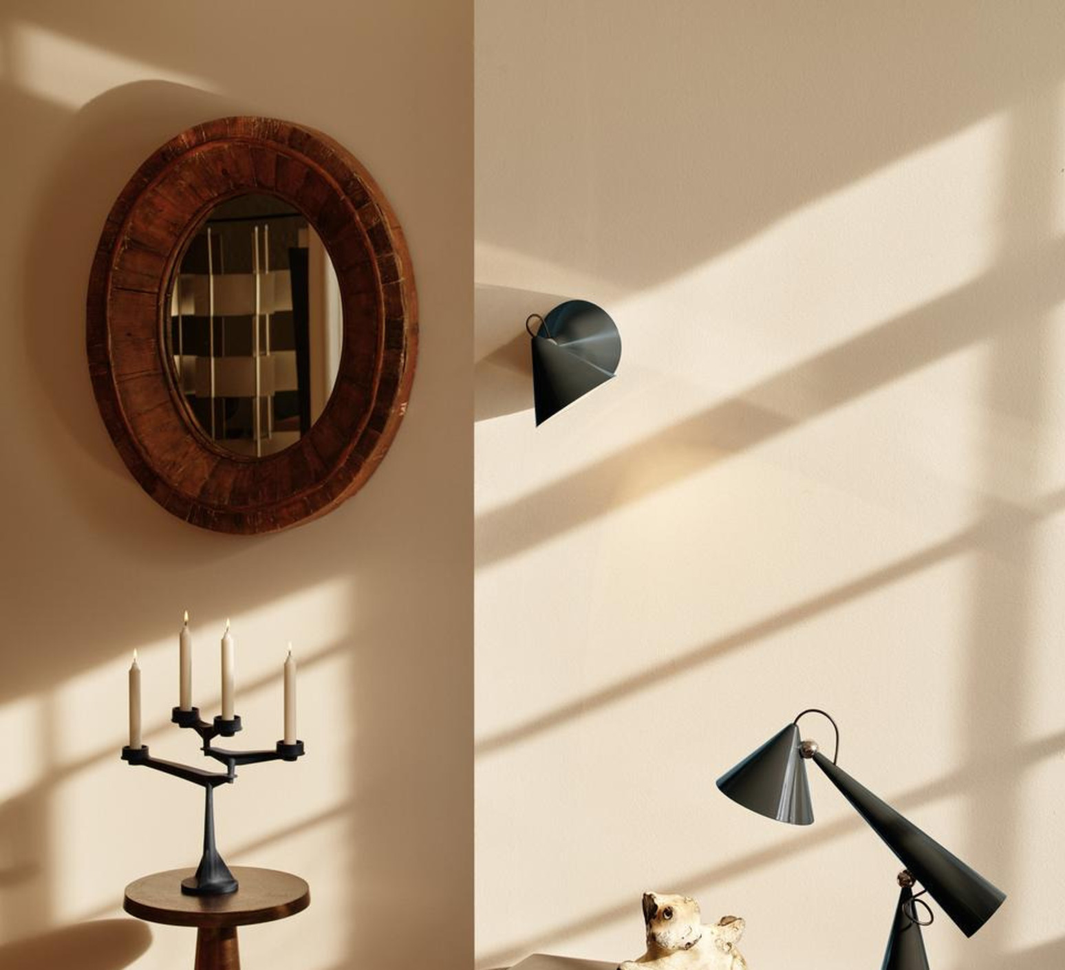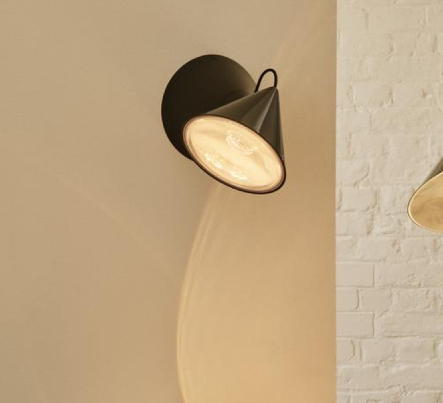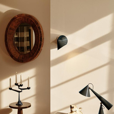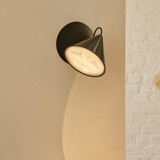 Ce luminaire mural s’inscrit dans une série explorant les formes coniques et les principes de l’optique, avec une approche directe de la lumière destinée aux espaces intérieurs.
