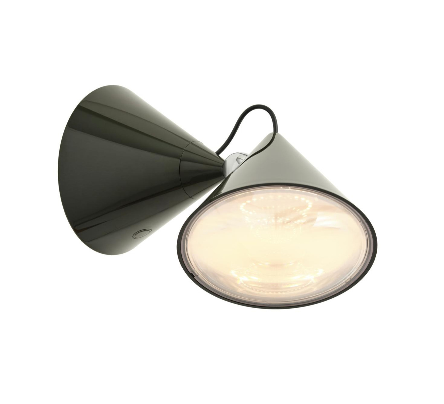 Sa silhouette conique affirmée, associée à la teinte kelp, compose un objet mural au caractère graphique marqué. Inspirée des lentilles plates utilisées dans les phares et instruments scientifiques, l’applique crée un faisceau précis qui structure le mur et met en valeur un volume, un passage ou une zone fonctionnelle. Elle trouve naturellement sa place dans un salon, un couloir ou un espace professionnel, seule ou en composition rythmée.
