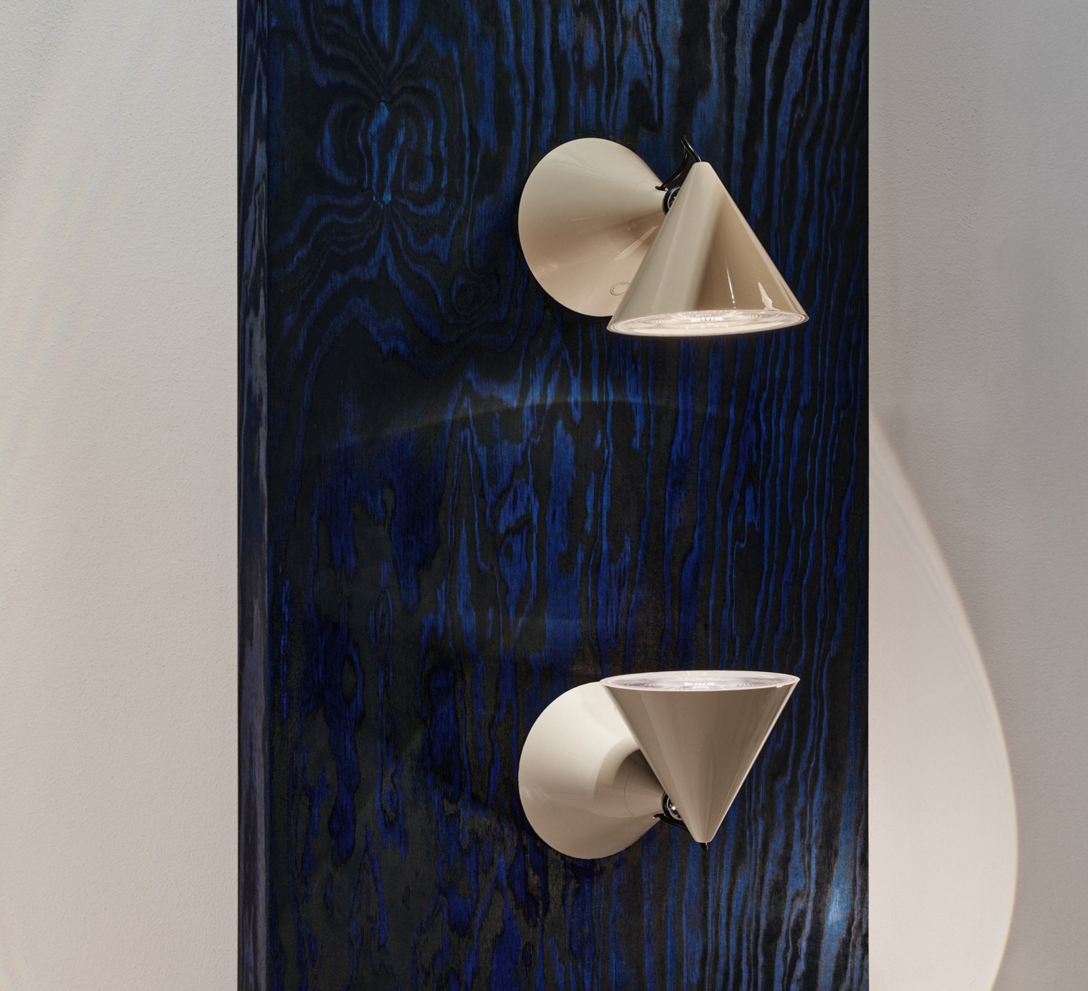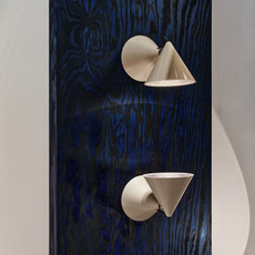 Ce luminaire mural s’inscrit dans une série explorant les formes coniques et les principes de l’optique, avec une approche directe de la lumière destinée aux espaces intérieurs.