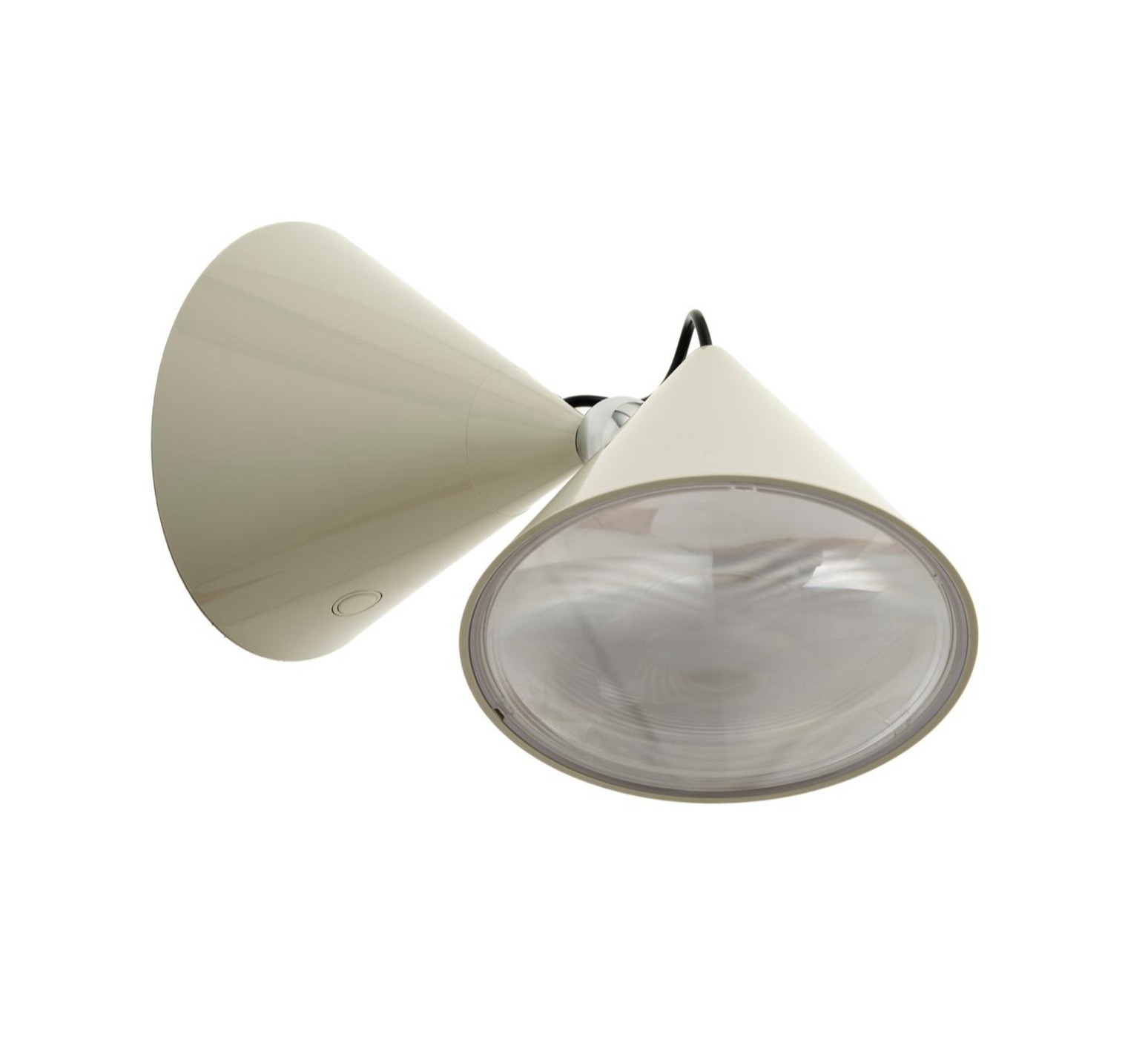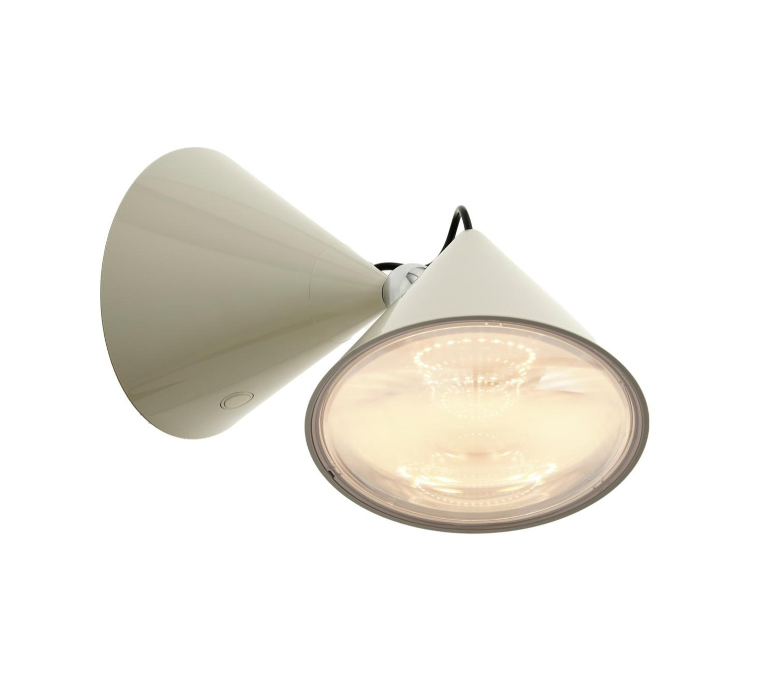 Sa silhouette conique affirmée, associée à la teinte putty, compose un objet mural au caractère graphique marqué. Inspirée des lentilles plates utilisées dans les phares et instruments scientifiques, l’applique crée un faisceau précis qui structure le mur et met en valeur un volume, un passage ou une zone fonctionnelle. Elle trouve naturellement sa place dans un salon, un couloir ou un espace professionnel, seule ou en composition rythmée.