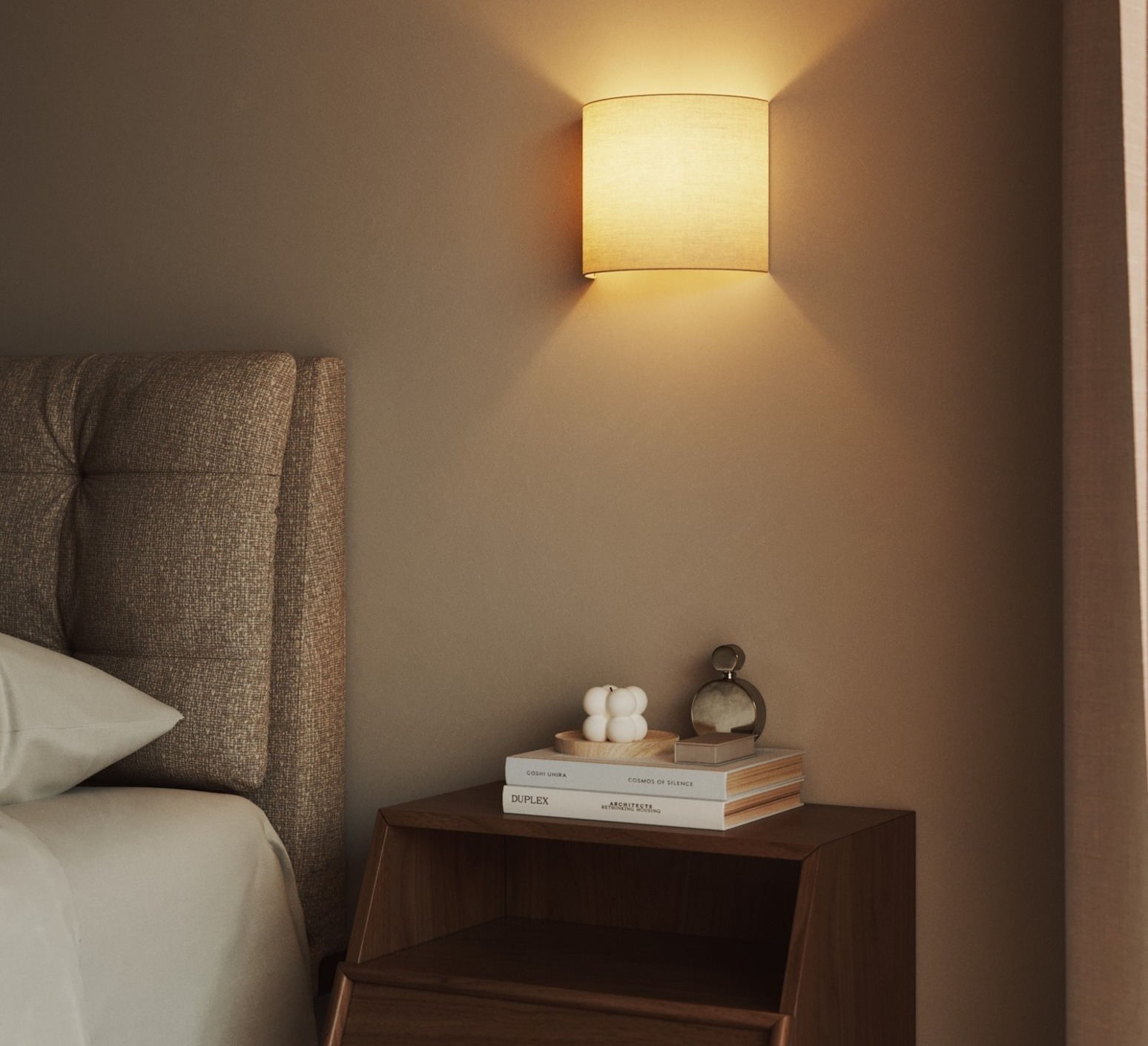 Son abat-jour semi-cylindrique en tissu couleur sable Arenal, tendu sur une structure légère, diffuse une lumière douce et chaleureuse, idéale pour créer une ambiance intime dans un salon, une chambre ou un couloir. Sa teinte s’accorde parfaitement aux intérieurs modernes ou naturels, apportant une touche de douceur et d’harmonie. Installée seule ou par paire, l’applique murale Ventola séduit par son allure sobre et sa capacité à sublimer les espaces sans les alourdir.