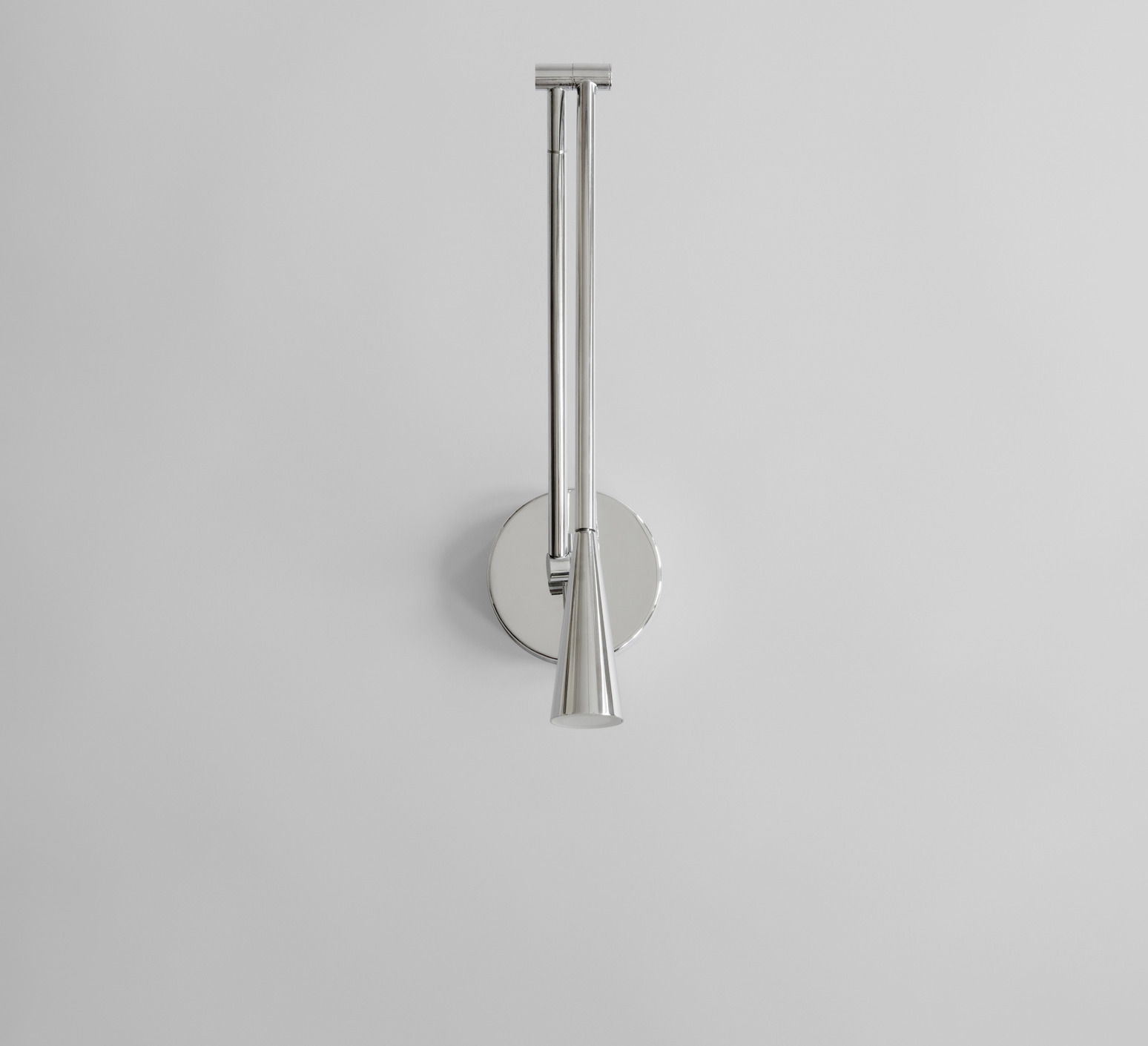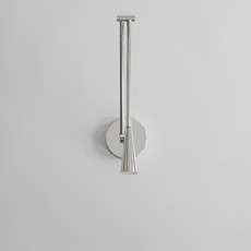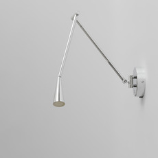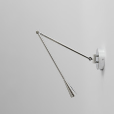 La lampe présente une finition chrome sur sa structure en aluminium, avec des tubes élancés qui se courbent avec précision vers un abat-jour conique. La lumière directe qu’elle diffuse crée un contraste subtil entre la matière métallique et la chaleur de l’éclairage. Snake s’installe en accent mural, seul ou en série, pour rythmer un couloir ou compléter un espace de vie contemporain.