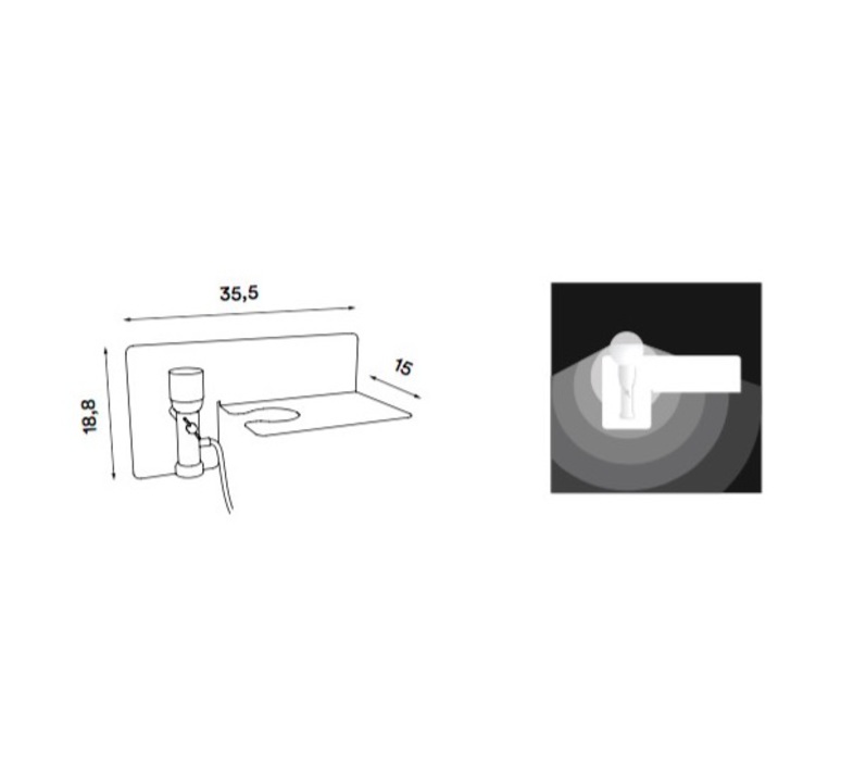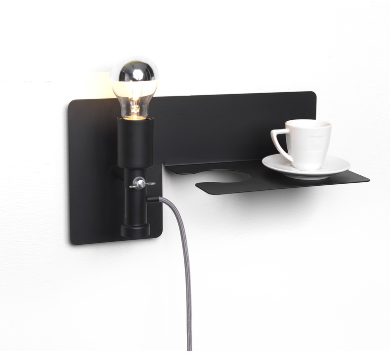 Posez vos livres, vos objets préférés, vos clés... cette applique murale est idéale dans un couloir, dans une entrée en guise de vide-poche et en table de chevet. Ludique, le support de l'ampoule est réversible : retournez-le, verrouillez-le avec la vis, et vous obtiendrez un bougeoir (pour bougie longue) : Un concept original ! La vis de verrouillage du support permet également d'incliner la lampe pour lui donner une forme original.