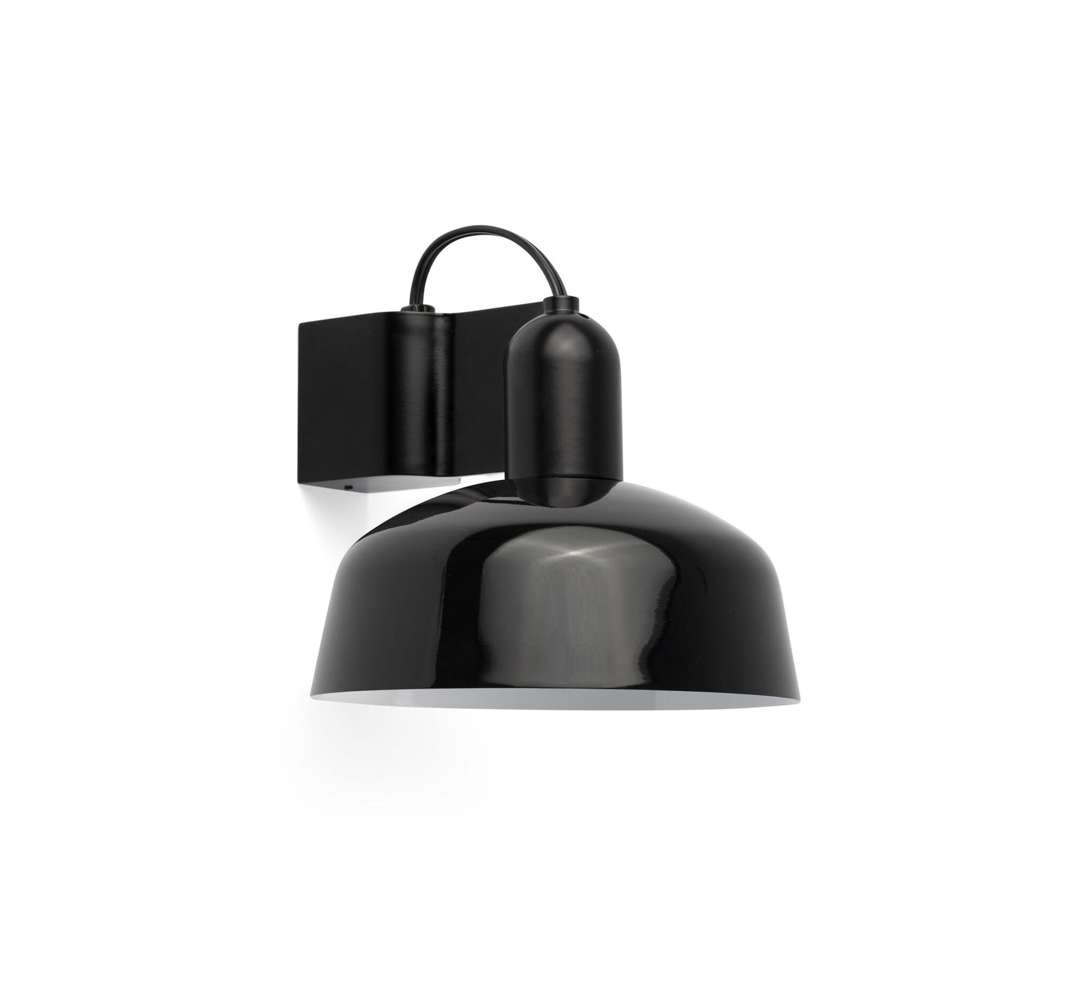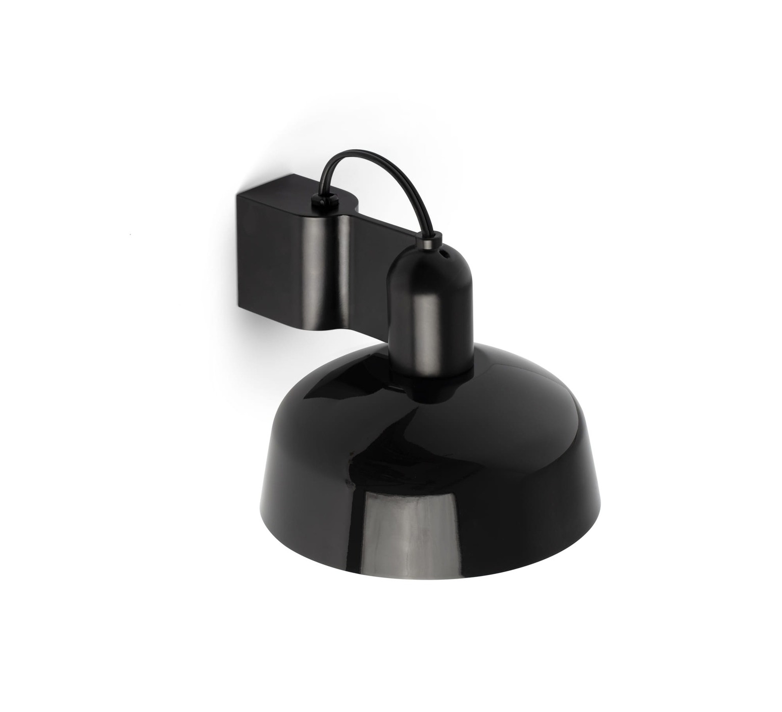 A la fois compacte et élégante, l'applique murale présente un corps en aluminium et un abat-jour en verre opalin noir. Elle offre un éclairage direct et un confort visuel adapté à côté d'une tête de lit.