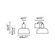 L'abat-jour du luminaire mesure 18,4cm de diamètre et l'applique entière mesure 15,5cm de hauteur et 14cm de profondeur. L'ampoule LED n'est pas incluse, il est recommandé d'utiliser une ampoule E27 d'une puissance de 15W maximum. Driver non requis et non dimmable.